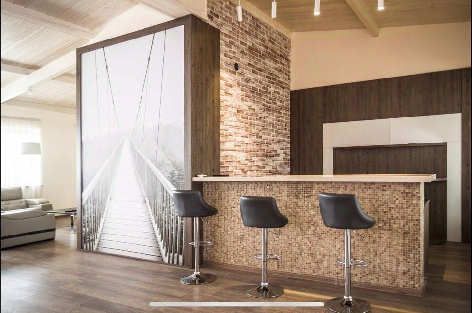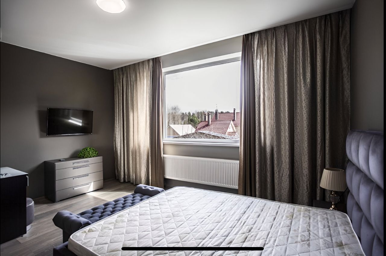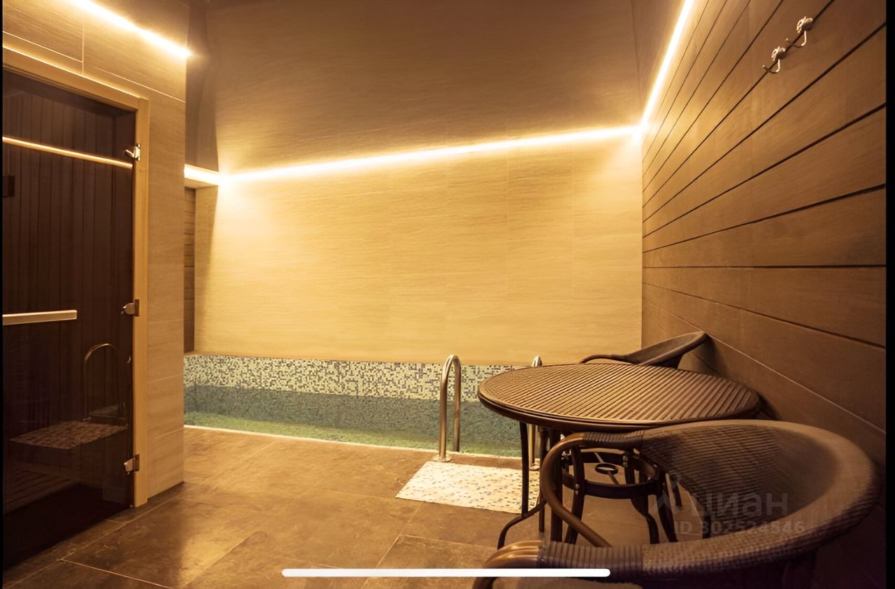 2-й этаж: 3 спальни, 3 санузла, гардеробные комнаты. 3-й этаж: студия, бильярд, бар, барбекю зона, с/у. На лесном участке 10 соток имеется гараж на 2 м/м, стоянка на 4 автомобиля, барбекю зона. Гостевой домик с баней на дровах (за доп.плату). Центральные коммуникации, проведено газовое отопление.