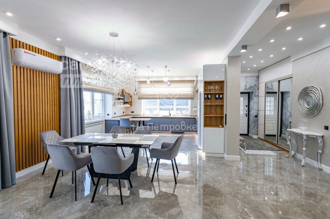 Id 22632. Продается НОВЫЙ СТИЛЬНЫЙ ДОМ с подземным паркингом и гостевым домом. Располагается в с. Петрово-Дальнее, всего в 10 мин. езды от МКАД по Рублево-Успенскому, Ильинскому или Новорижскому шоссе. Дом очень удобен для проживания большой семьи с разными поколениями, есть отдельные входы. Особое внимание уделено освещению и функциональности дома. Построен качественно: стены - кирпич, фундамент - монолитная плита. Планировка дома:1-я часть: 1 этаж: : терраса, прихожая, просторная кухня-столовая-гостиная, спальня, санузел, душевая, гардеробная, постирочная, 2 этаж: коридор, игровая, спальня, кабинет, спальня, санузел, 2-я часть: 1 этаж: терраса, прихожая, просторная кухня-столовая-гостиная, спальня, санузел, душевая, 2 этаж: коридор, санузел, постирочная, 2 спальни. Отдельного внимания заслуживает цокольный этаж, который отвели под шикарную парковку, котельную и комнату для водителя. Парковка отапливается, сделаны выводы для шланга и для подключения мойки Karcher. Центральные коммуникации: 60 кВт электричество, магистральный газ, водопровод, канализация, оптоволоконный интернет. Уход за участком 9 сот. займет минимум времени: выполнено мощение, дорожки, выделена зона барбекю с газоном и цветниками. Подсветка с датчиками движения. На участке стоит гостевой дом 64 кв. м, полностью оборудованный мебелью и техникой для проживания. В доме все сделано, чтобы проживать с комфортом круглый год. Рядом развитая инфраструктура Рублевки и Новорижского шоссе: ТЦ, магазины, лучшие учебные заведения, развлекательные центры, рестораны, мед. клиники, салоны красоты, водоемы, парки и др. Звоните и приезжайте на просмотр.