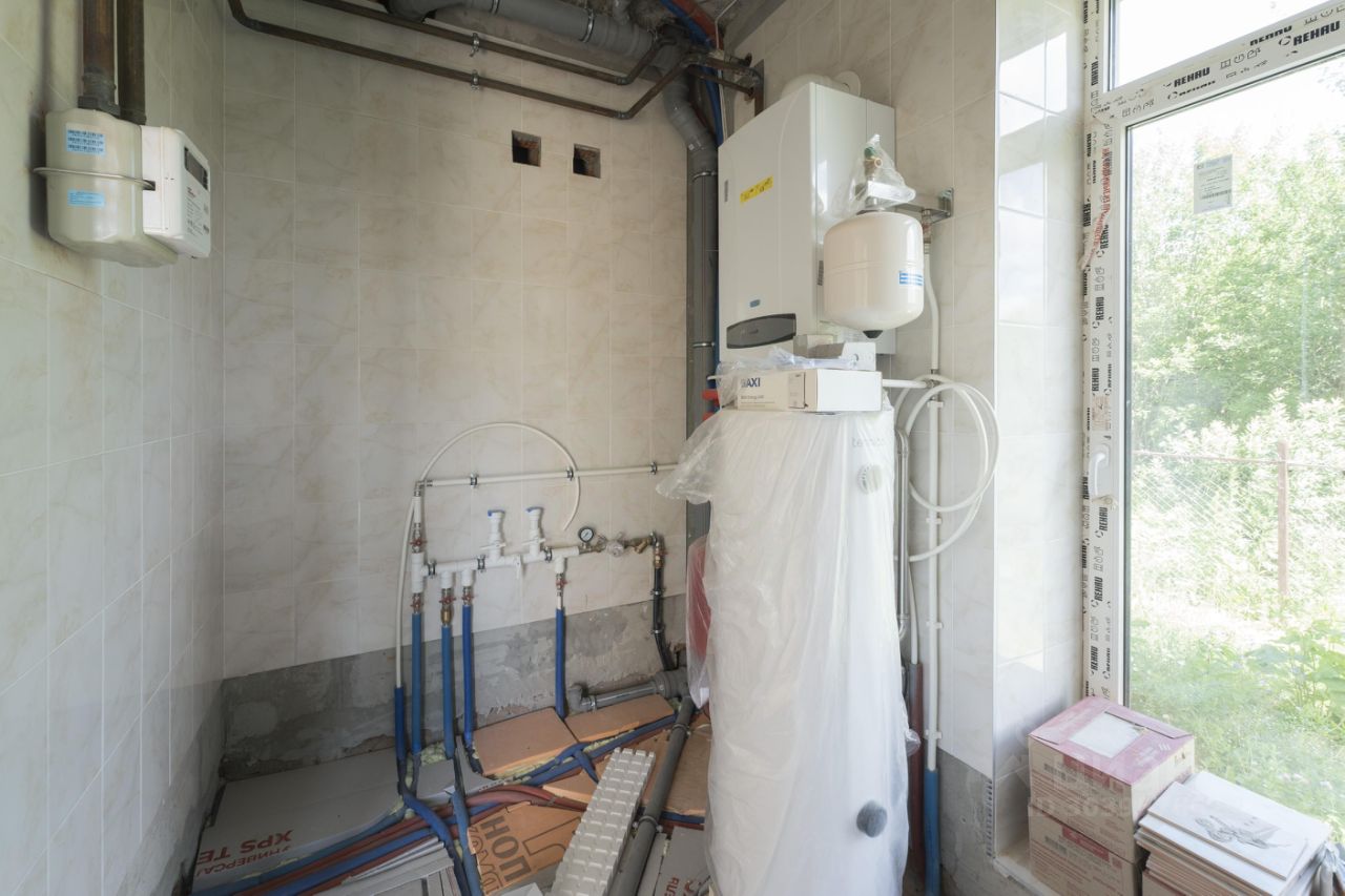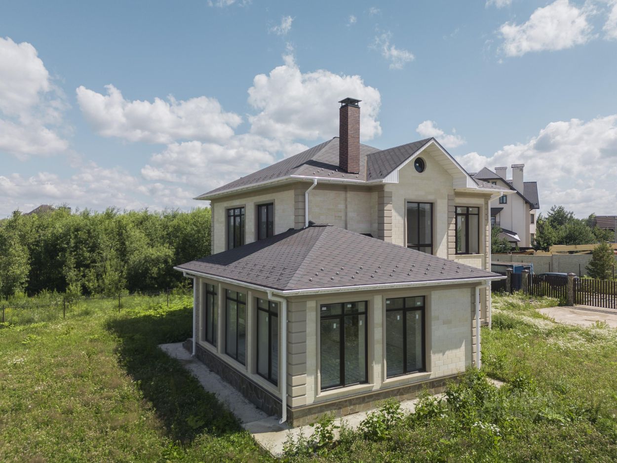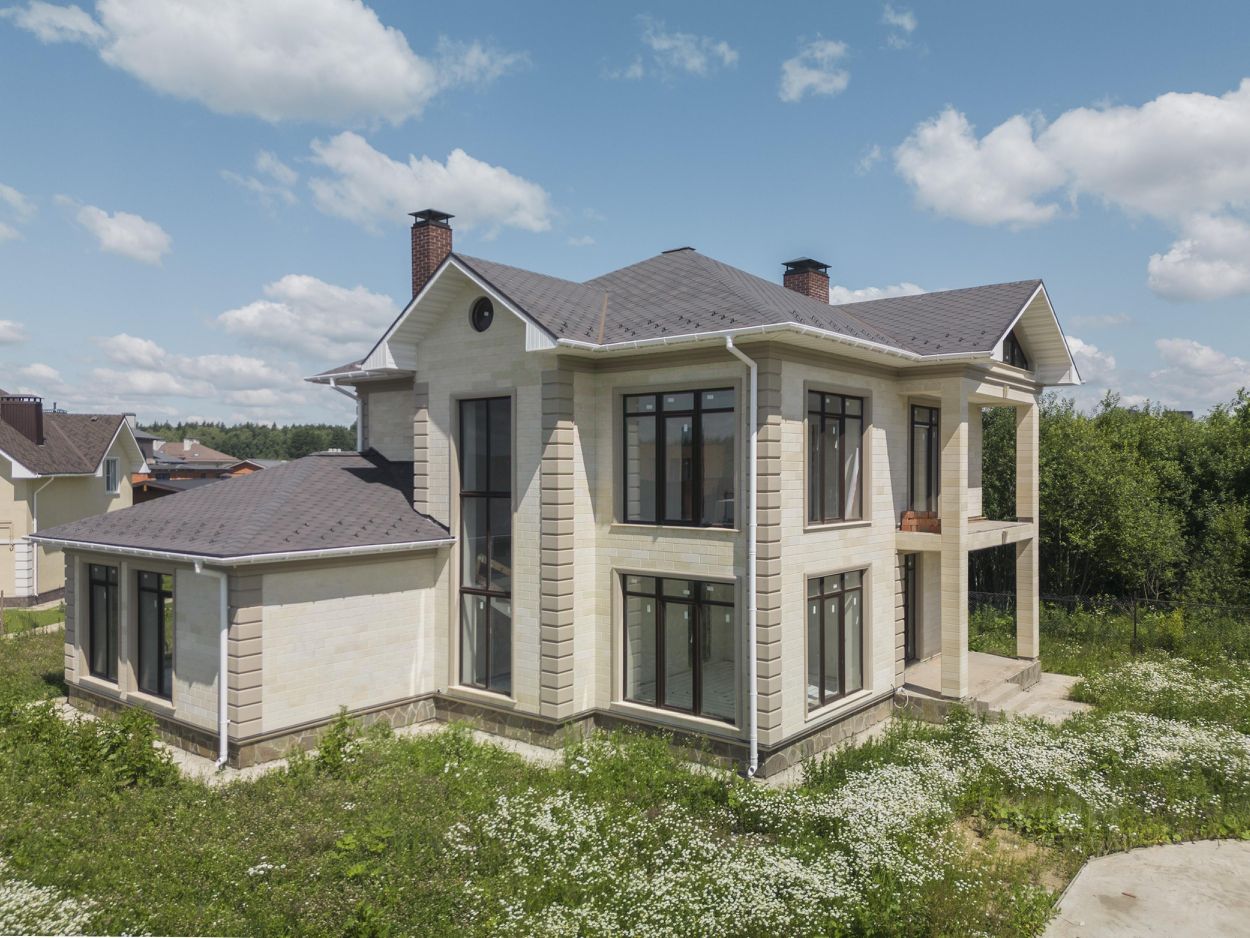 Дом построен из керамического кирпича и облицован натуральным камнем, под чистовую отделку - whitebox/вайтбокс (стены отштукатурены, заведены все центральные коммуникации заведены в дом: эл-во, магистральный газ, вода, канализация).