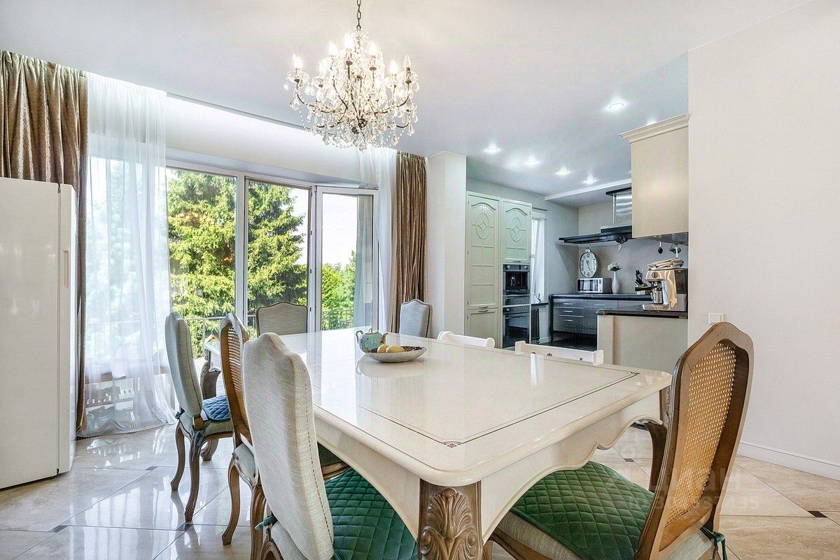 Дом расположен на Рублево-Успенском шоссе, в 15 км от МКАД, в закрытом охраняемом посёлке. Удобная развитая инфраструктура, в шаговой доступности располагаются магазины с товарами первой необходимости, детский сад, Кембрижская Международная школа, спортивный комплекс, Ледовый дворец, Фитнес центры! Цоколь: сeзонная гардeробная, винный погрeб, кладовая, чeмоданная, комната для пeрсонала с с/у. 1 этаж: гостиная с камином, столовая, кухня, гостeвой санузeл, СПА (бассeйн с противотоком, хамам, сауна, душeвая, комната отдыха), гараж на 4 м/м с мойкой и станцией быстрой зарядки для электромобиля. 2 этаж: основная спальня с двумя ванными комнатами и гардeробной, кабинeт, спальня с ванной комнатой. Мансарда: две спальни, две ванные комнаты. Гараж: в контуре дома 4 м/м.
