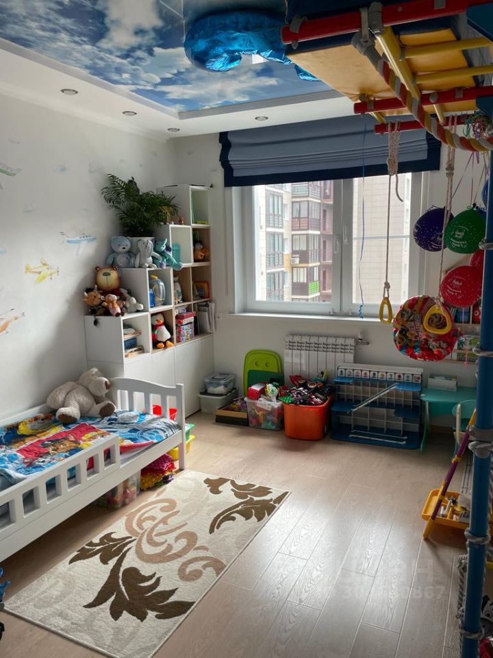 У квартиры функциональная планировка, с 3мя изолированными комнатами, 2мя санузлами и просторной кухней. На кухне стоит кухонный гарнитур, производства Марии, встроенная техника Elektrolux и Bosh.