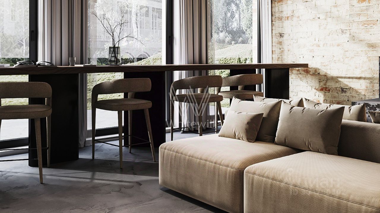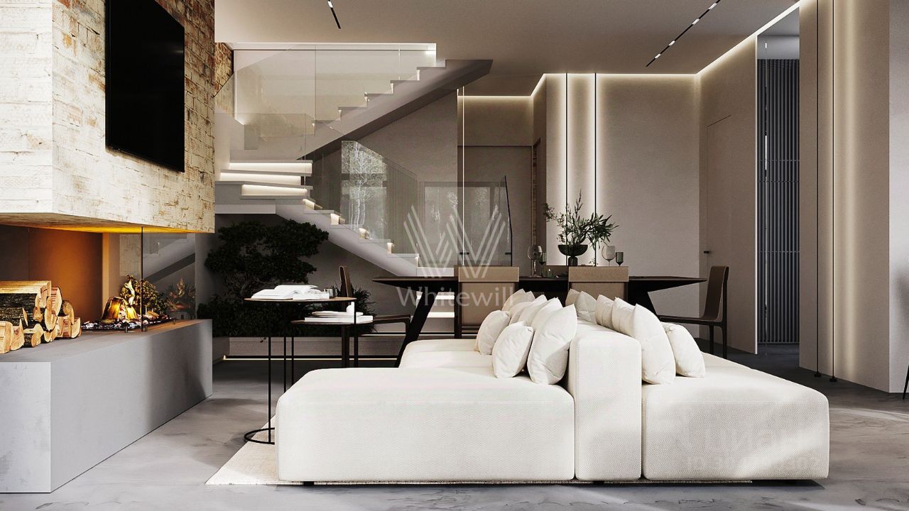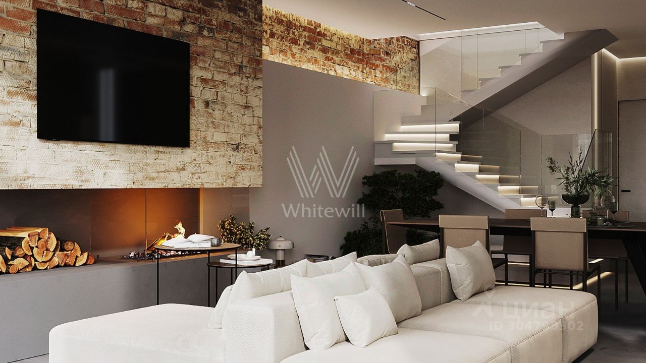 Петрово-Дальнее. Трехуровневый таунхаус площадью 363 м² расположен на уютном участке 5 соток. Интерьер оформлен в стиле ''лофт'' с использованием теплых приглушенных оттенков, имитации кирпичной кладки и подсветки. В резиденции разместили 5 спален, уютную гостиную-кухню с камином и выходом на террасу, дровяную сауну и 2 комнаты, в которых можно обустроить зоны отдыха и досуга. Участок подойдет для размещения барбекю.