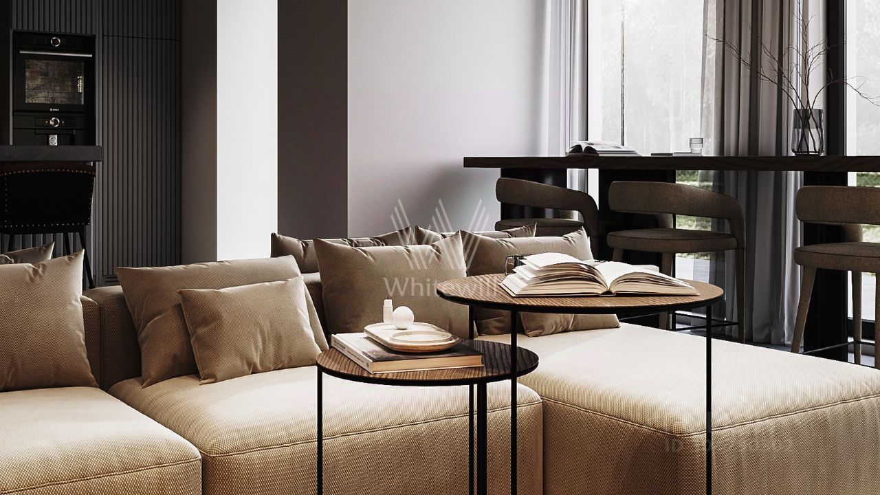 2-й уровень: кухня-гостиная, 2 спальни с санузлами, гардеробная.