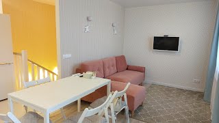 Арт. 69843031 Вашему вниманию предлагается светлая и уютная квартира с удобной индивидуальной планировкой! 1 этаж: Светлая отделка и интерьер в классическом спокойном стиле из качественных материалов. На первом уровне установлен теплый пол по всей площади коридора. Лестница выполнена из ясеня. Спальня и детская оборудованы кондиционерами и местами для хранения вещей. Из обеих комнат есть выход на большой французский балкон с видом на хвойный лес. Гардеробная оборудована всем необходимым для комфортного хранения вещей и совмещена с собственной бойлерной. Просторная ванная комната отделана светлой плиткой. Туалет также светлый и просторный.