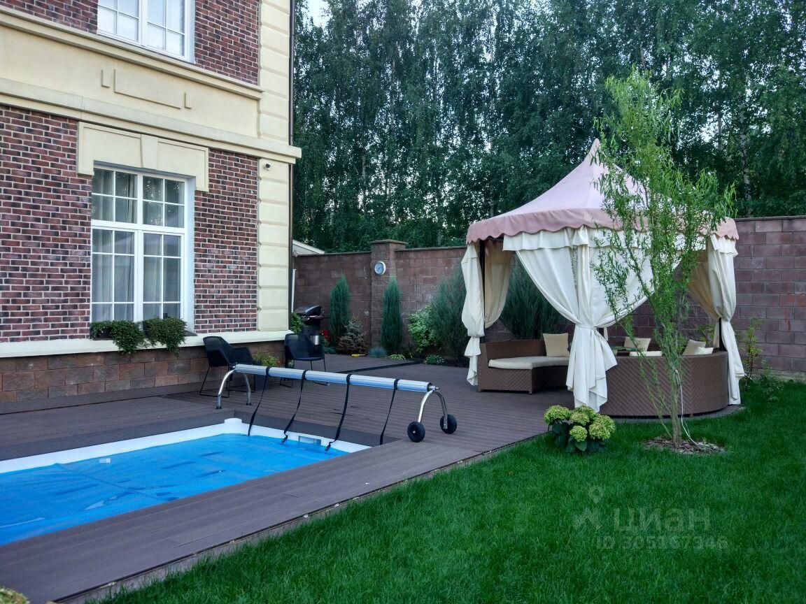 Участок с ландшафтным дизайном , высажены туи , приватная зона отдыха, открытый бассейн, высажены растения, выполнено уличное освещение, автополив, выложены дорожки с подогревом.