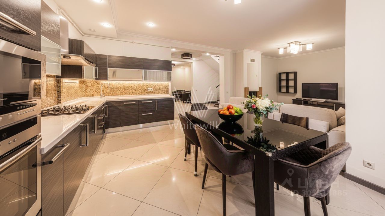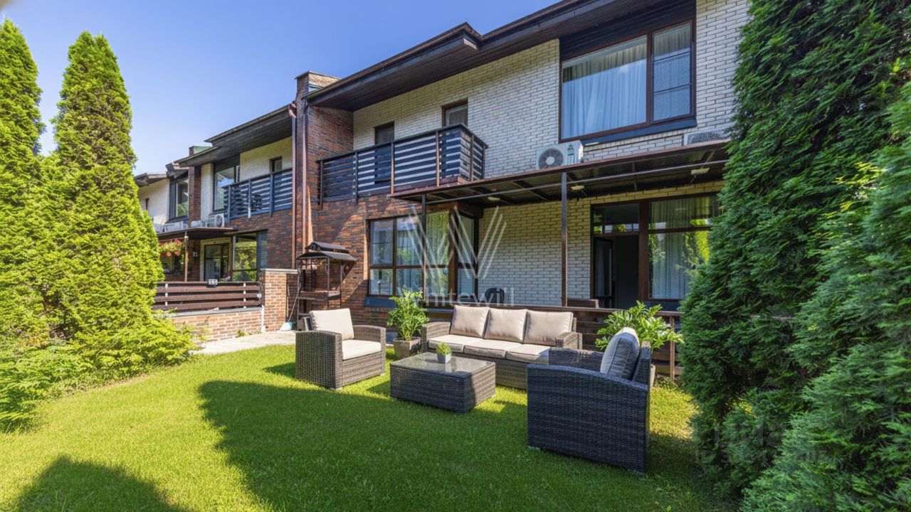 Новоархангельское. Таунхаус площадью 200 м² расположен на полевом участке 2 сотки. Фасад в современном стиле облицован клинкерным кирпичом разных оттенков. В отделке светлого интерьера использованы теплые оттенки, сощдающие атмосферу уюта. Дом укомплектован мягкой мебелью. Планировка резиденции включает 3 спальни, гостиную с камином, 3 санузла, кухню-столовую, оборудованную необходимой встроенной техникой, гардеробную, 2 балкона и террасу с местом для барбекю. В контуре таунхауса предусмотрен гараж на 1 машину, перед домом паркинг на 2 машины.