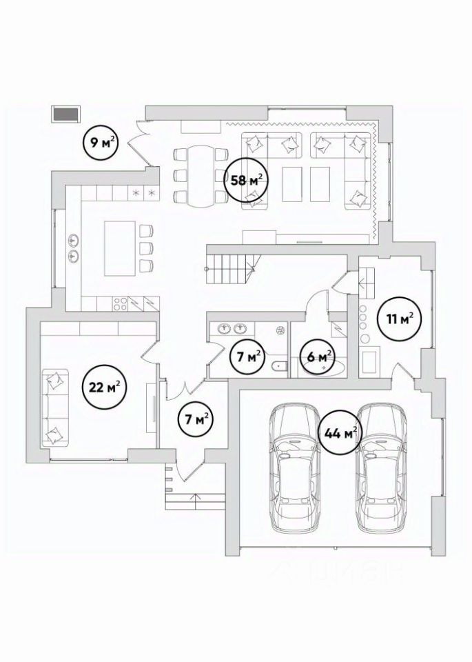 Строящийся премиальный коттедж ''Малевич'' 298 м² с просторным участком от 10 соток в статусном коттеджном поселке Ильинка Парк. Комплектация дома включает комфортный гараж, шириной 7 м, для двух автомобилей, террасу с выходом на собственный участок, балкон 12 м² на 2 этаже. Плоскую кровлю гаража можно обустроить как летнее патио, чтобы расширить внутреннее пространство дома.