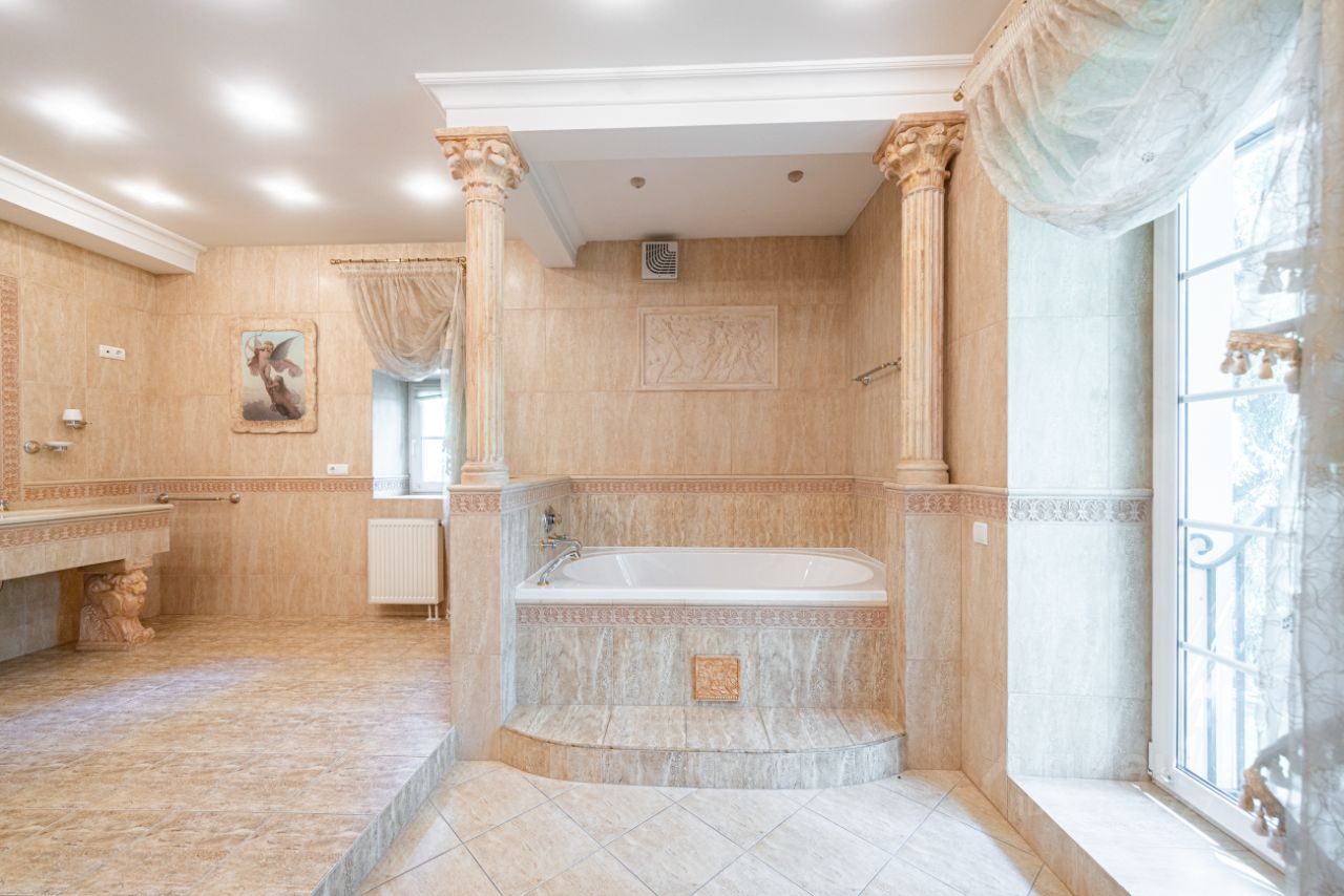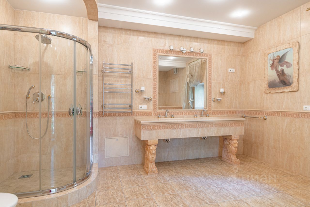 Предлагается на продажу дом на красивом просторном участке в элитном посёлке. В доме имеется всё для комфортного проживания. На участке также расположен гостевой дом с гаражом и отдельностоящий гараж на три машиноместа с автомойкой и квартирой для персонала. Основной дом, планировочное решение: Цоколь: Холл, постирочная, помещение свободного назначения, большая гардеробная, винный погреб, бар, котельная. 1-й Этаж: Входная группа, гардеробная, кабинет, сан. узел, каминный зал с выходом на террасу, кладовая, гостевая спальня с сан узлом. 2-й Этаж: Зимний сад, холл, мастер блок: гостиная с выходом на балкон, спальня, ванная, гардеробная. Детский блок: игровая с выходом на балкон, две спальни с сан узлами и гардеробными. Мансарда со своей зоной отдыха.