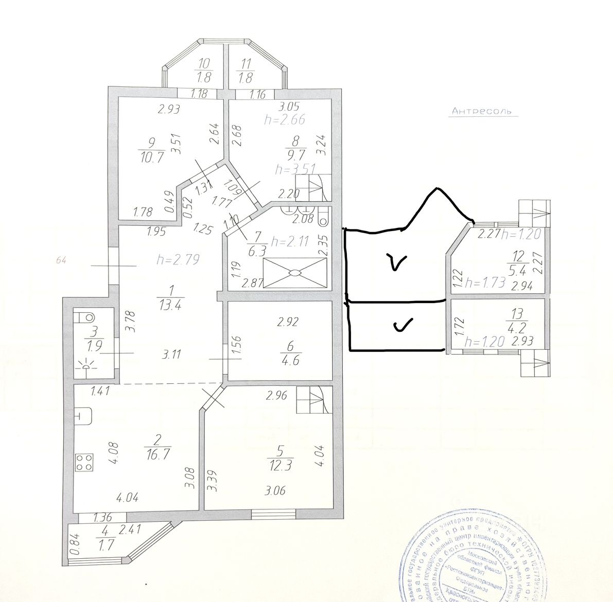 Планировка : - 3 изолированные комнаты (в 2-х есть вторые этажи и антресоли) - большая кухня-гостинная - гардеробная - 2 санузла