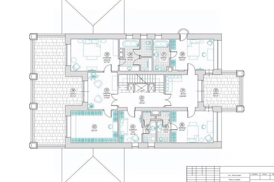 2 этаж: спальня с гардеробной и санузлом - 3 шт., спальня с гардеробной.