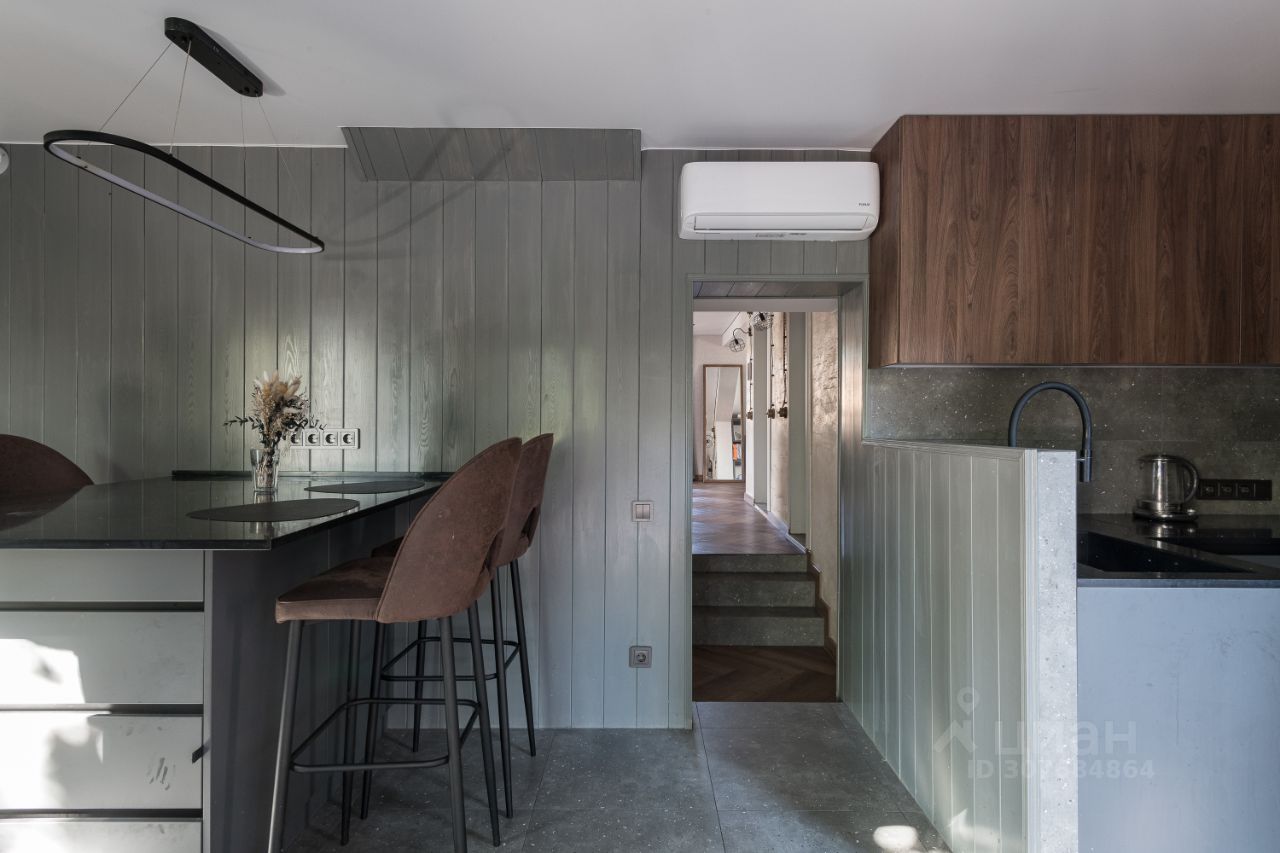 Характеристики дома: Первый этаж дома - прихожая, Большая гостиная зона 48 кв.м. с дровяным камином, пол инженерная доска, латунные батареи, все окна пластик. На кухне установлен встроенный кухонный гарнитур со всей бытовой техникой, столешница - искусственный камень (в отделке кухонной зоны использованы натуральные материалы, дерево - лиственница, керамогранит), теплый пол. Выход на веранду. Большой санузел. На втором этаже расположены три спальные комнаты, просторная гардеробная, санузел. Мансардный этаж спланирован одним общим пространством, при этом есть зонирование на различные уютные уголки. Много мест хранения.