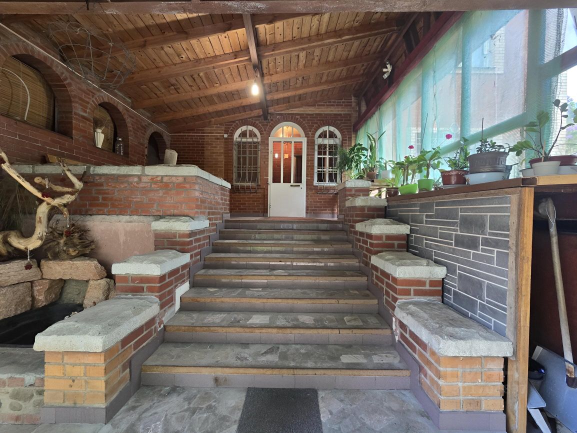 Продается 2 -х этажный 4 - х уровневый кирпичный дом 450 м2 на участке в 26.2 соток. 1- ый этаж: холл, кухня столовая, гостиная с действующим камином, 2 спальни, 1 с/у. 2-ой этаж: холл, 4 спальни, кабинет, 1 с/у. 3-й этаж: 1 спальня, спортивно-развлекательный зал с мансардой. Этаж неотапливаемый. Цокольный этаж 250 м2. На площади цокольного этажа расположены подсобные помещения, постирочная, столярная и слесарная мастерские, яма для ремонта автомобилей, теплые гаражи. На участке домик для гостей, баня, летняя кухня с погребом, подвал для хранения вин, мангал, открытая стоянка, крытая стоянка на 2 машиноместа, скважина 84 м., колодец. Центральное водоснабжение, теплоснабжение, канализация, газ.