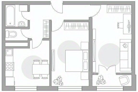 Жилая площадь 26.65 кв. м, кухня 9.67 кв. м, типовой ремонт, окна выходят на улицу.