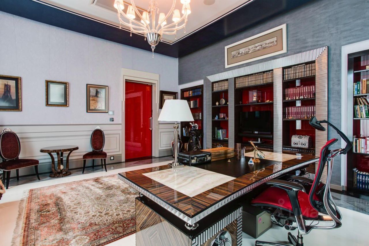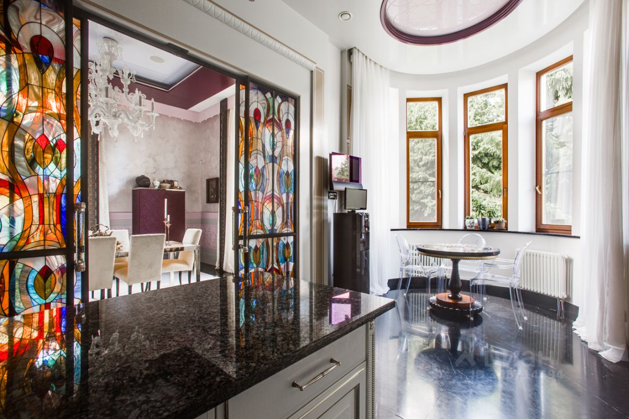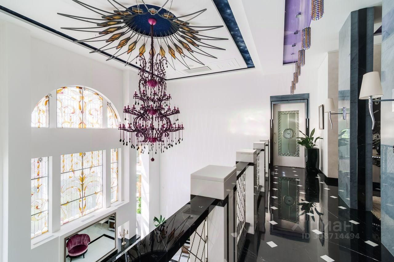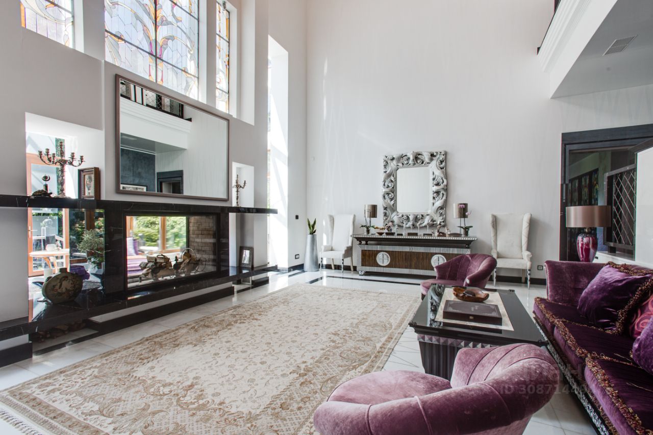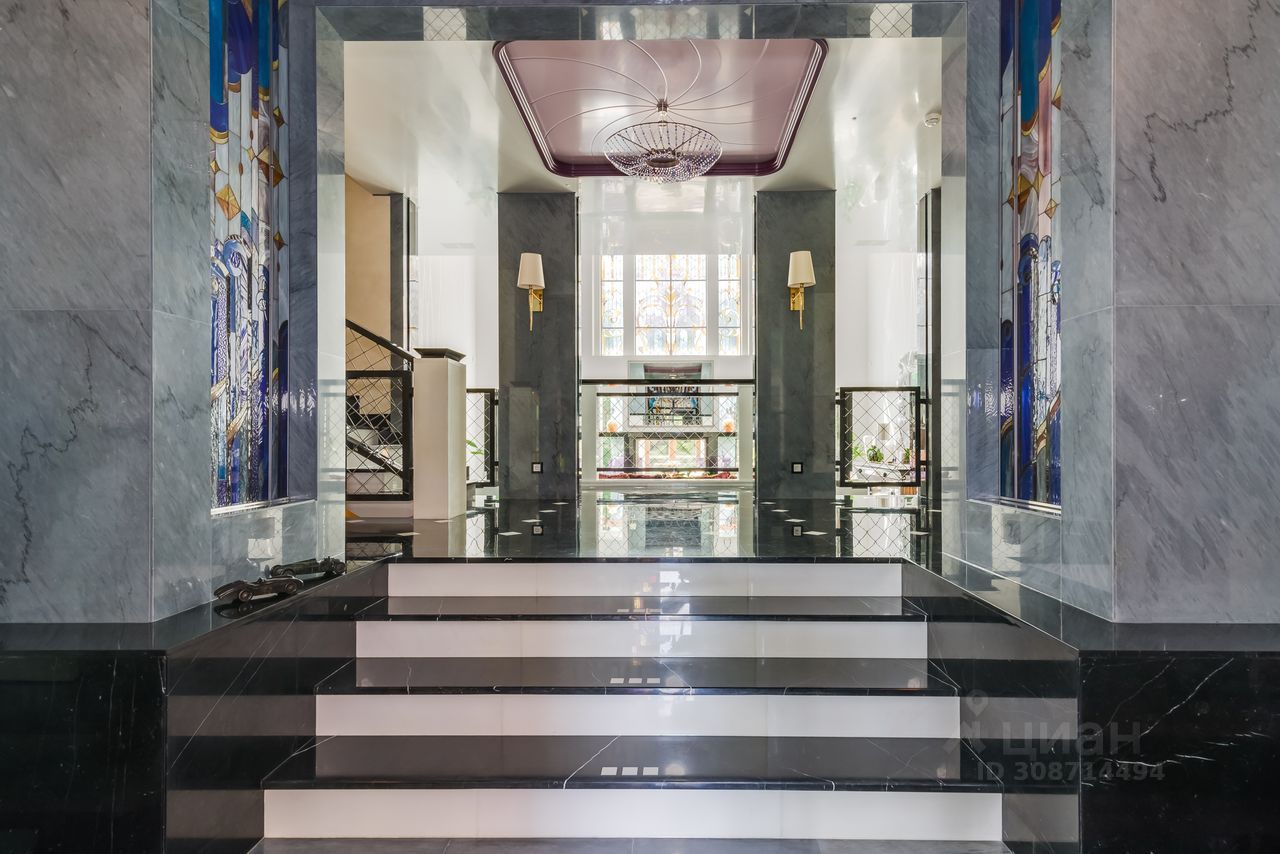 Дом выполнен в современном стиле с элементами классики и ар-деко. В отделке использованы только высококачественные материалы: натуральный камень, дерево, мрамор, стекло. Интерьеры дома поражают своей элегантностью, изысканностью и функциональностью. Здесь есть все для комфортной жизни. Просторная гостиная с потолками 11 метров объединенная с зимним садом двухсторонним камином. Полностью оборудованные кухня и столовая. 4 спальни со своими гардеробными и ванными комнатами. Два кабинета, библиотека, игровая комната для детей, спортзал, сауна, хамам, снежная комната, криосауна, пятиметровый бассейн с противотоком, домашний кинотеатр и комната для прослушивания музыки.