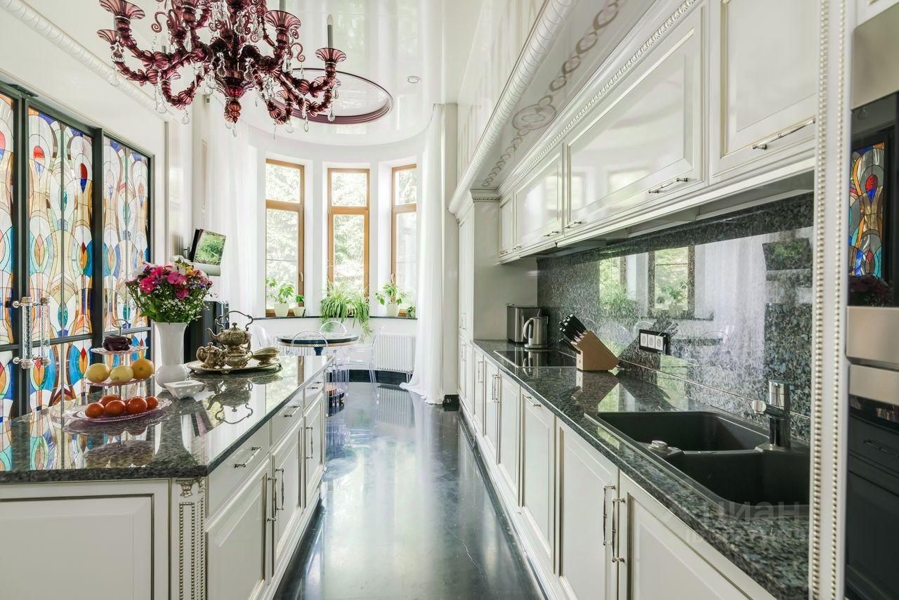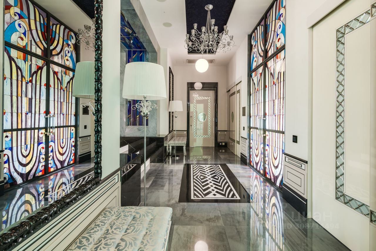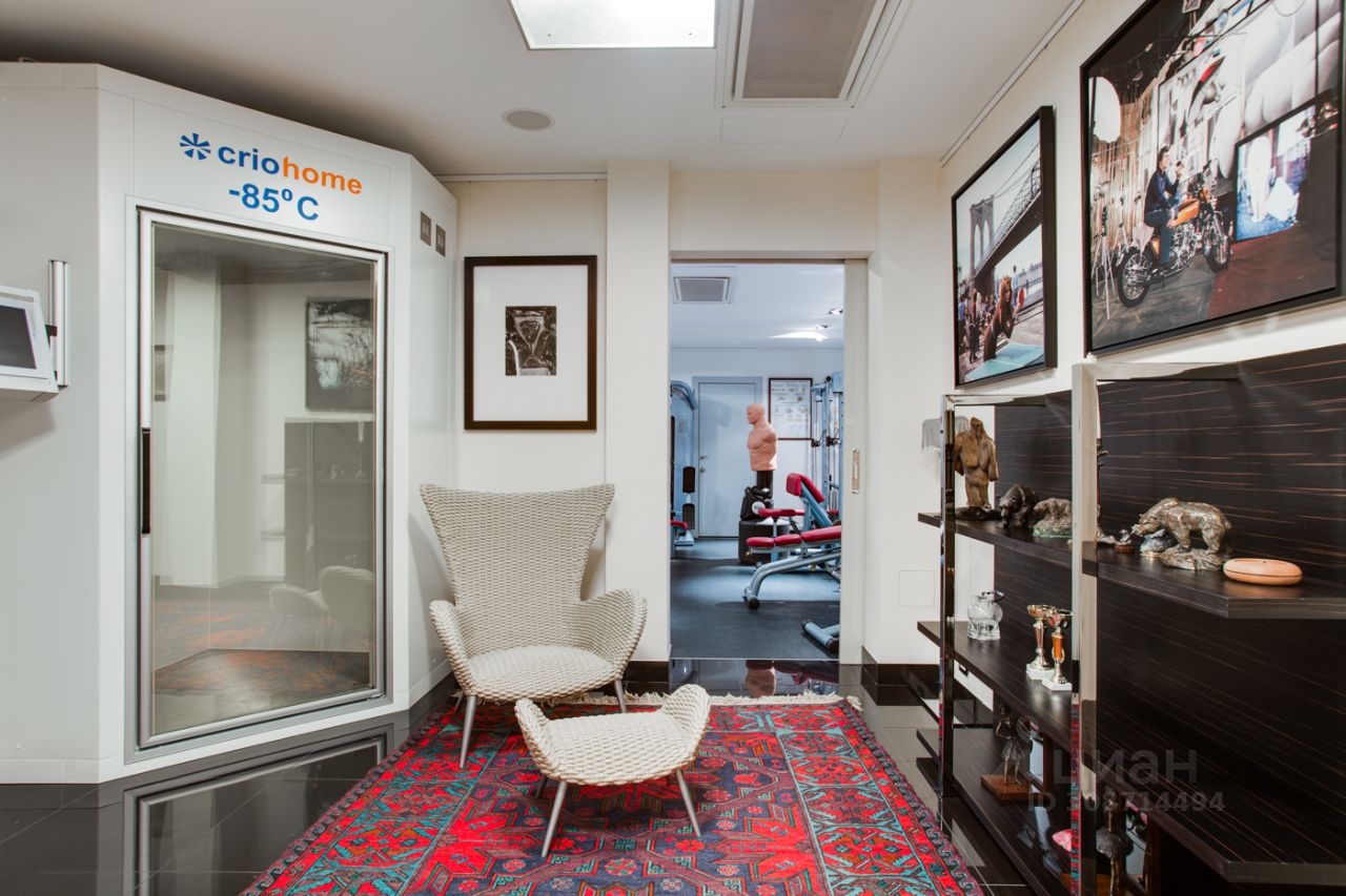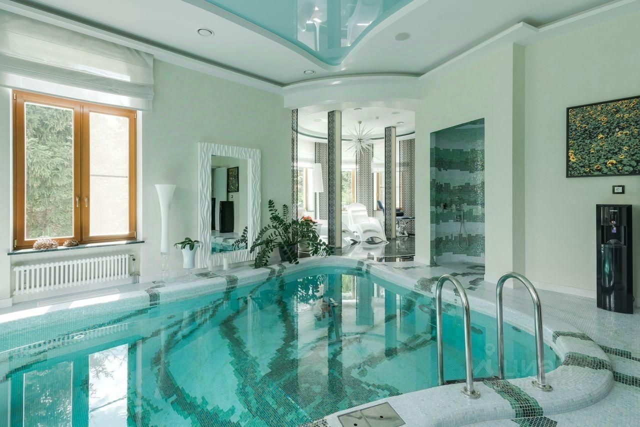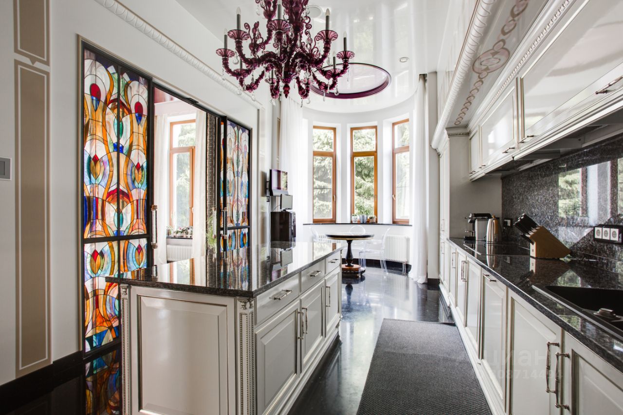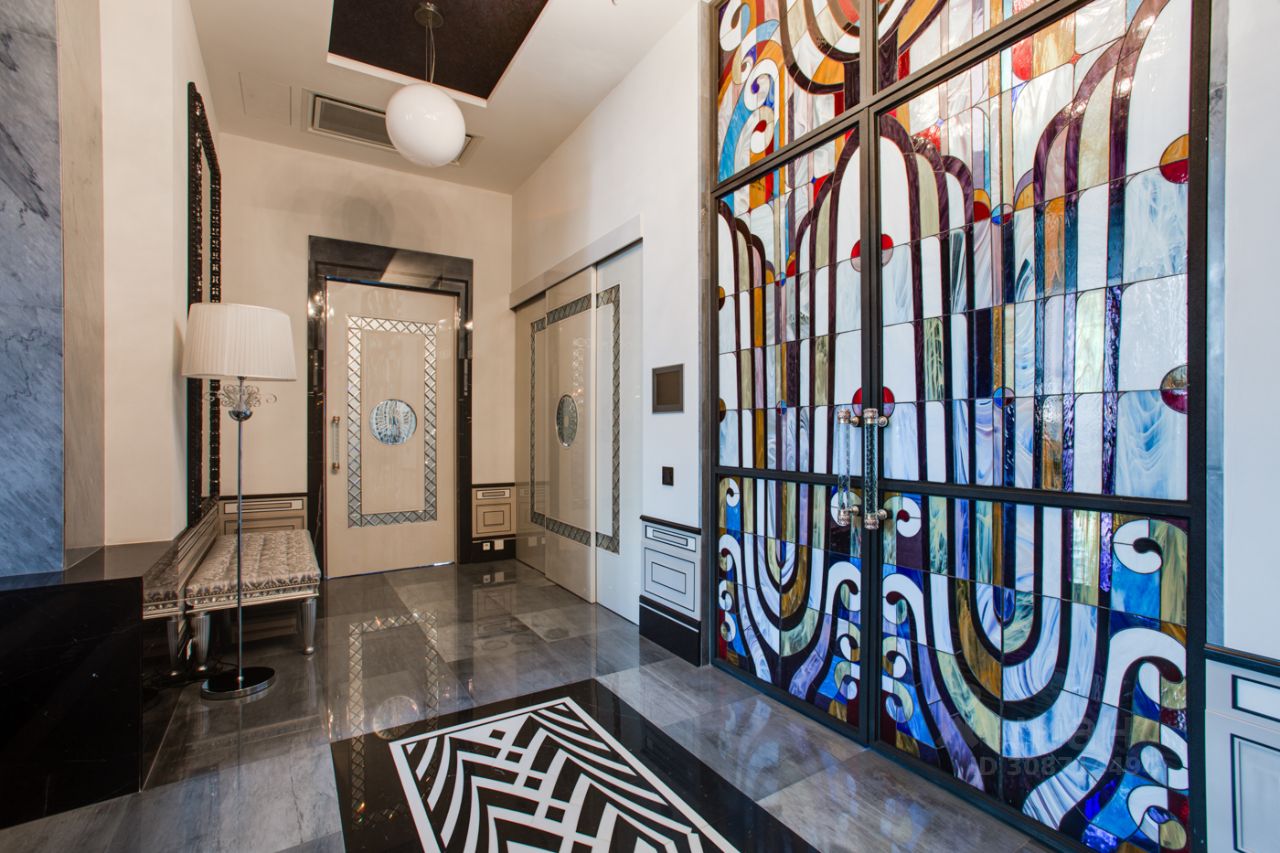 Дом выполнен в современном стиле с элементами классики и ар-деко. В отделке использованы только высококачественные материалы: натуральный камень, дерево, мрамор, стекло. Интерьеры дома поражают своей элегантностью, изысканностью и функциональностью. Здесь есть все для комфортной жизни. Просторная гостиная с потолками 11 метров объединенная с зимним садом двухсторонним камином. Полностью оборудованные кухня и столовая. 4 спальни со своими гардеробными и ванными комнатами. Два кабинета, библиотека, игровая комната для детей, спортзал, сауна, хамам, снежная комната, криосауна, пятиметровый бассейн с противотоком, домашний кинотеатр и комната для прослушивания музыки.