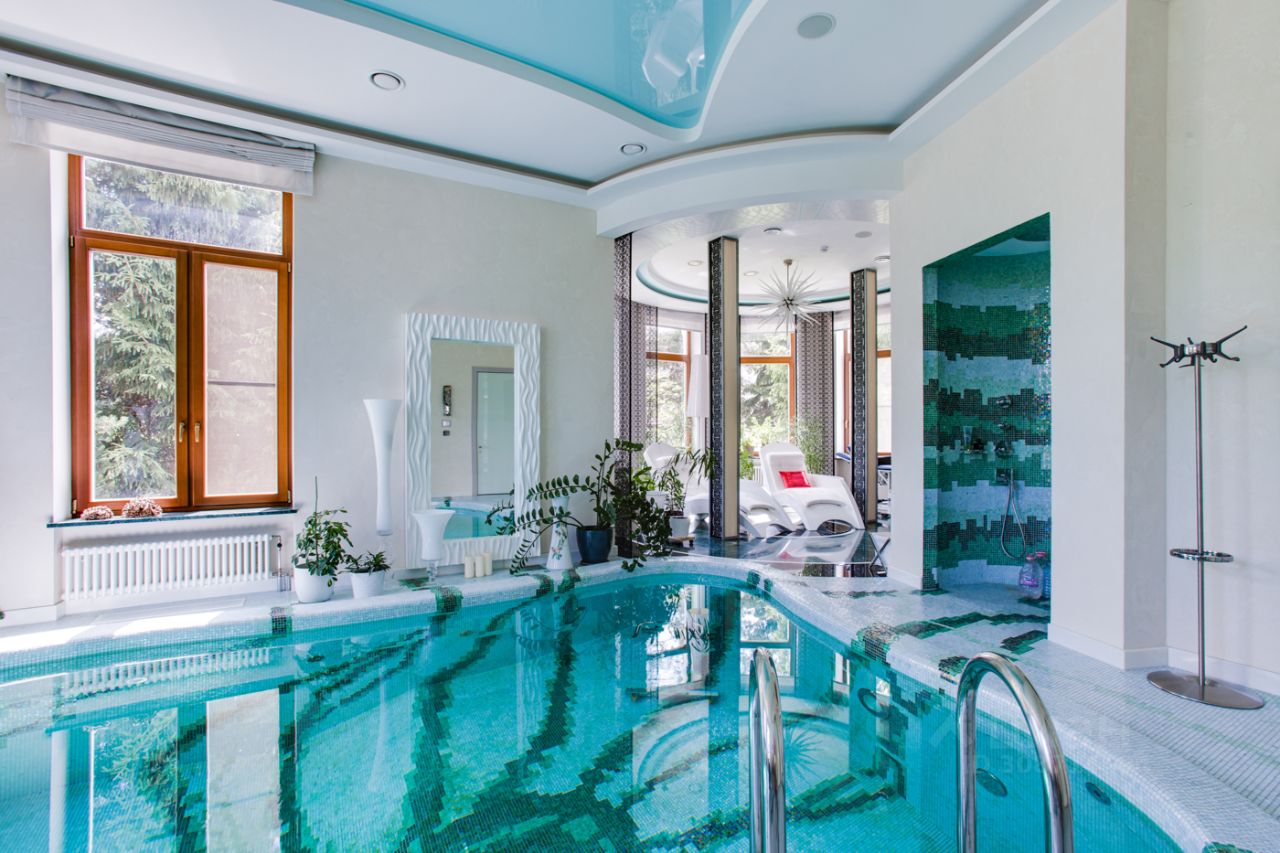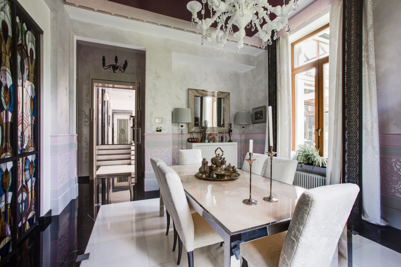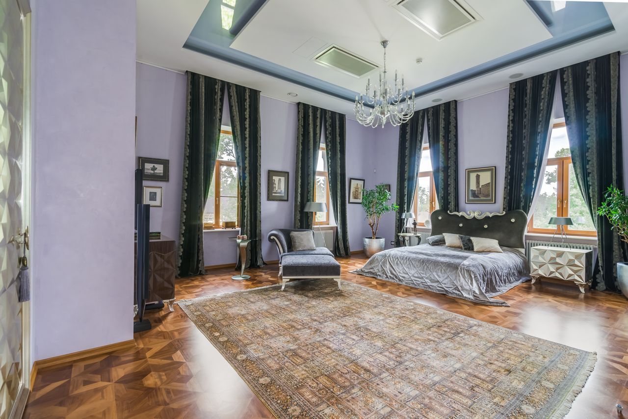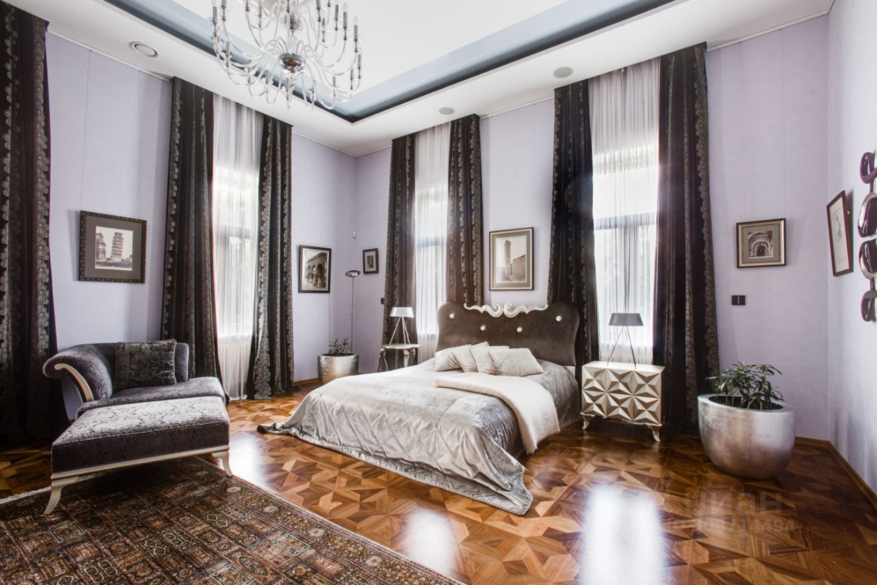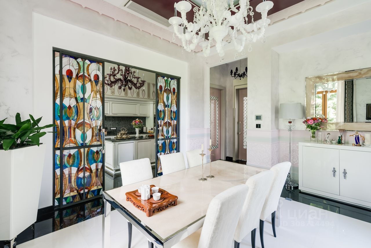 Дом выполнен в современном стиле с элементами классики и ар-деко. В отделке использованы только высококачественные материалы: натуральный камень, дерево, мрамор, стекло. Интерьеры дома поражают своей элегантностью, изысканностью и функциональностью. Здесь есть все для комфортной жизни. Просторная гостиная с потолками 11 метров объединенная с зимним садом двухсторонним камином. Полностью оборудованные кухня и столовая. 4 спальни со своими гардеробными и ванными комнатами. Два кабинета, библиотека, игровая комната для детей, спортзал, сауна, хамам, снежная комната, криосауна, пятиметровый бассейн с противотоком, домашний кинотеатр и комната для прослушивания музыки.