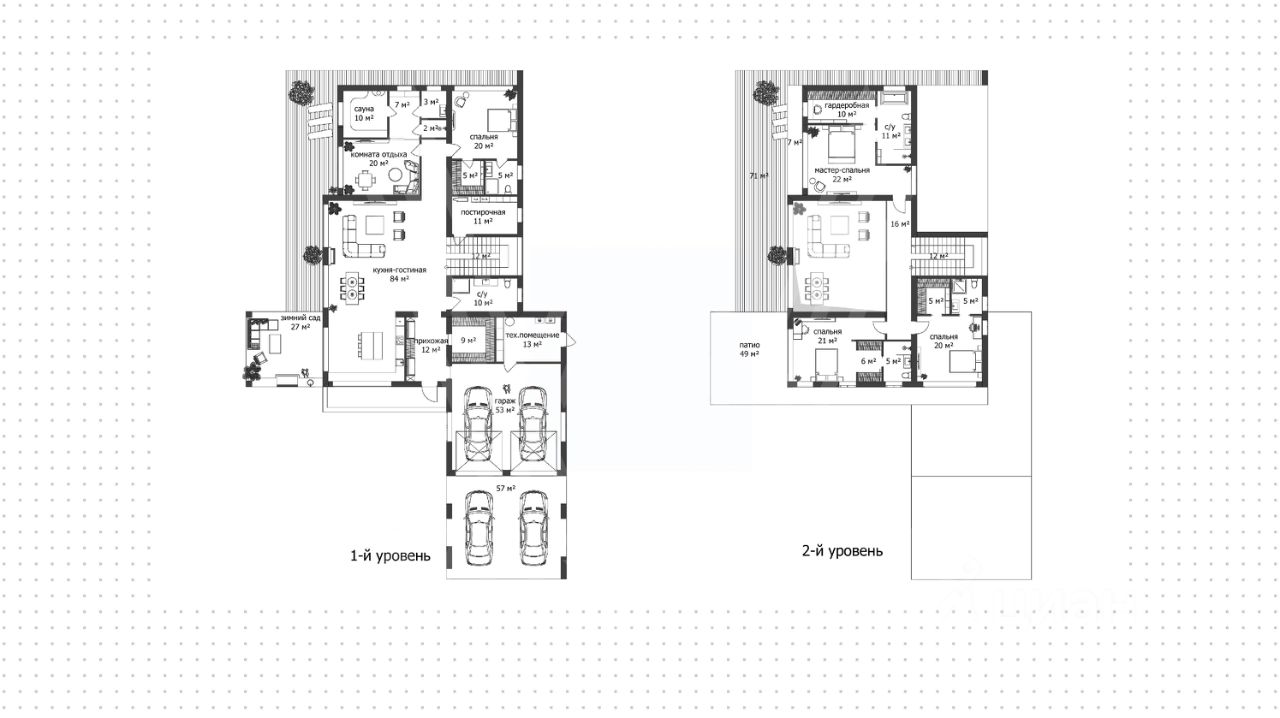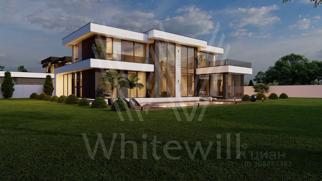 В доме спланировали просторную гостиную со вторым светом в 7 метров, гостиную-столовую, зимний сад, 4 мастер -спальни, SPA-зону с хаммамом и комнатой отдыха, комнату для персонала с отдельным входом. Высота потолков на 1-м этаже 3,3м, на втором- 3,2м Из-за большой площади остекления в доме установлены усиленные профили Шуко. Все окна с проветриванием без горизонтальных перемычек. Также в контуре дома предусмотрен гараж на 2 машины с остеклением, монолитный навес на 2 машиноместа, шириной 8 метров. На заднем дворе может расположиться открытый бассейн. На участке будут выполнены ландшафтные работы: газон, 6-метровые деревья -туи и ели, автополив. Продумано все по инсоляции и правильной посадки дома на участке. Покупателю в подарок все проекты: дизайн, по коммуникациям.