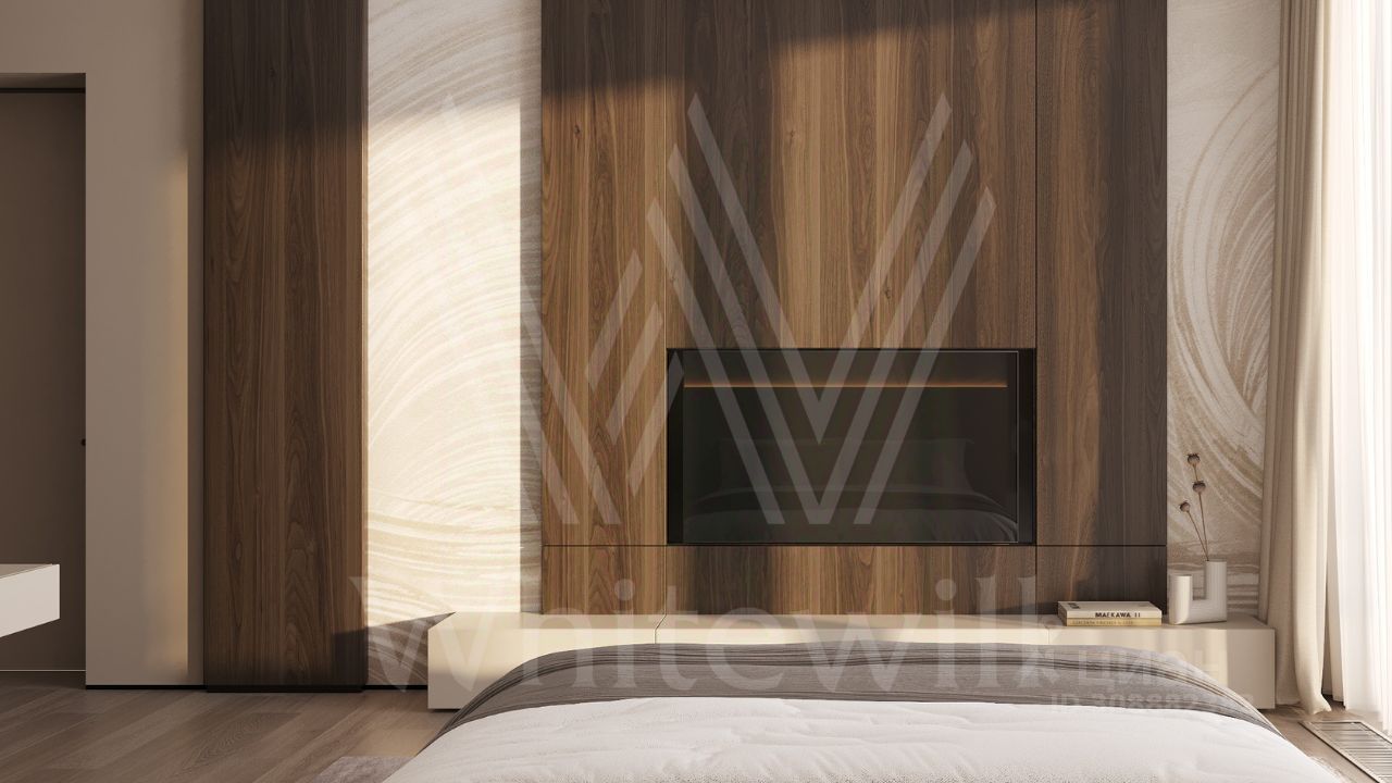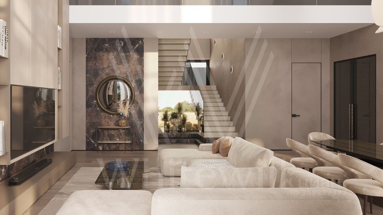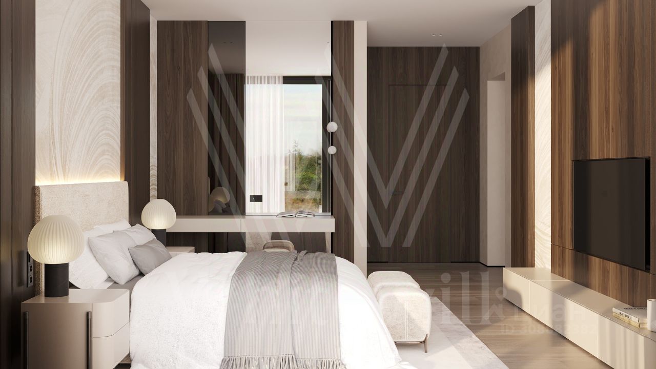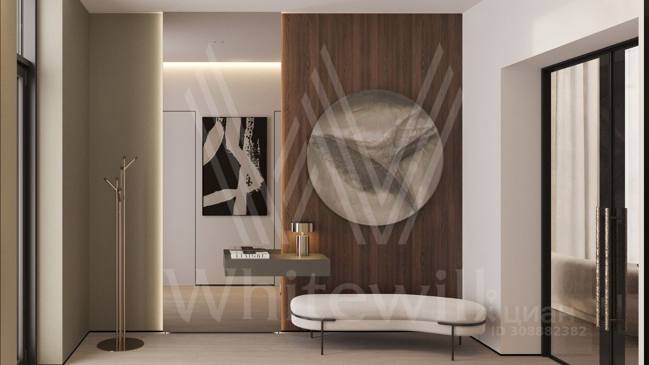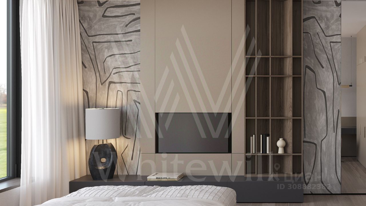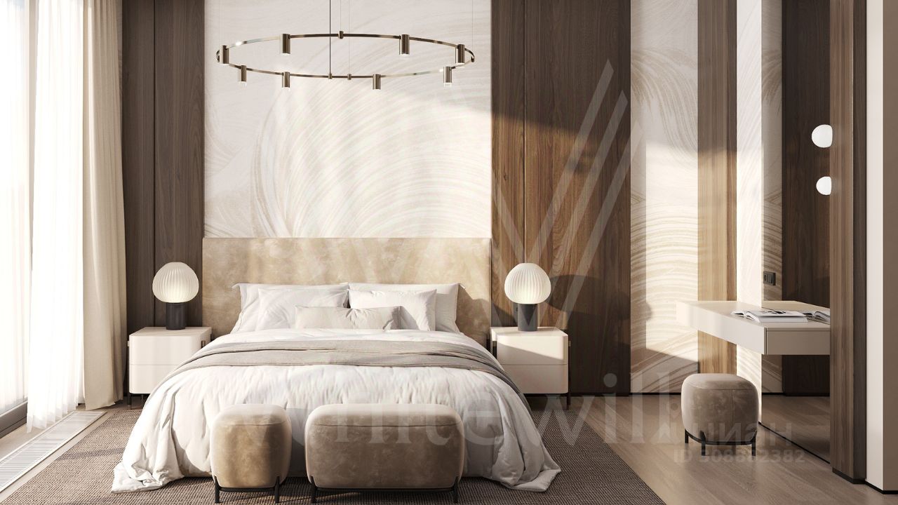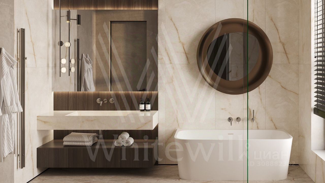ID 12 902. Райт Хиллс. Новый загородный дом площадью 621 м² расположен на ровном участке 21 сотка. Расположение в поселке - самая высокая точка. Фасад с панорамными окнами выполнен в современном стиле и облицован итальянским керамогранитом Laminam, немецкой декоративной штукатуркой StoMarlit и декорирован рейками из мореного дуба. Коттедж предлагается без отделки.