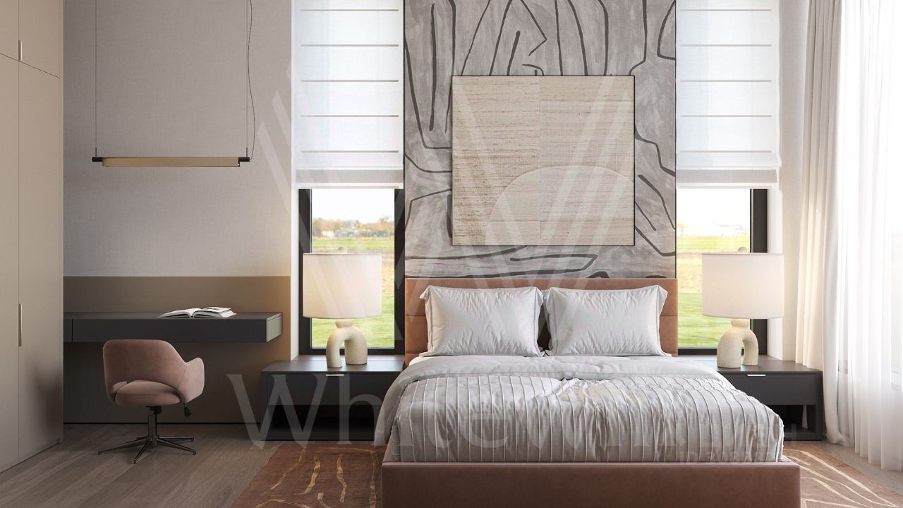 В доме спланировали просторную гостиную со вторым светом в 7 метров, гостиную-столовую, зимний сад, 4 мастер -спальни, SPA-зону с хаммамом и комнатой отдыха, комнату для персонала с отдельным входом. Высота потолков на 1-м этаже 3,3м, на втором- 3,2м Из-за большой площади остекления в доме установлены усиленные профили Шуко. Все окна с проветриванием без горизонтальных перемычек.