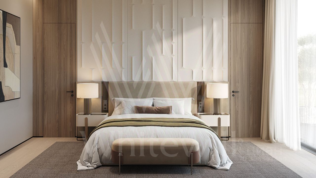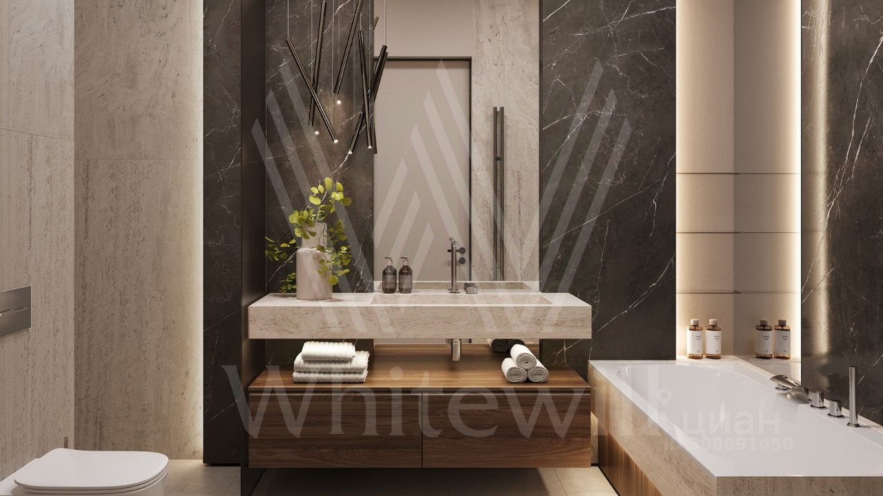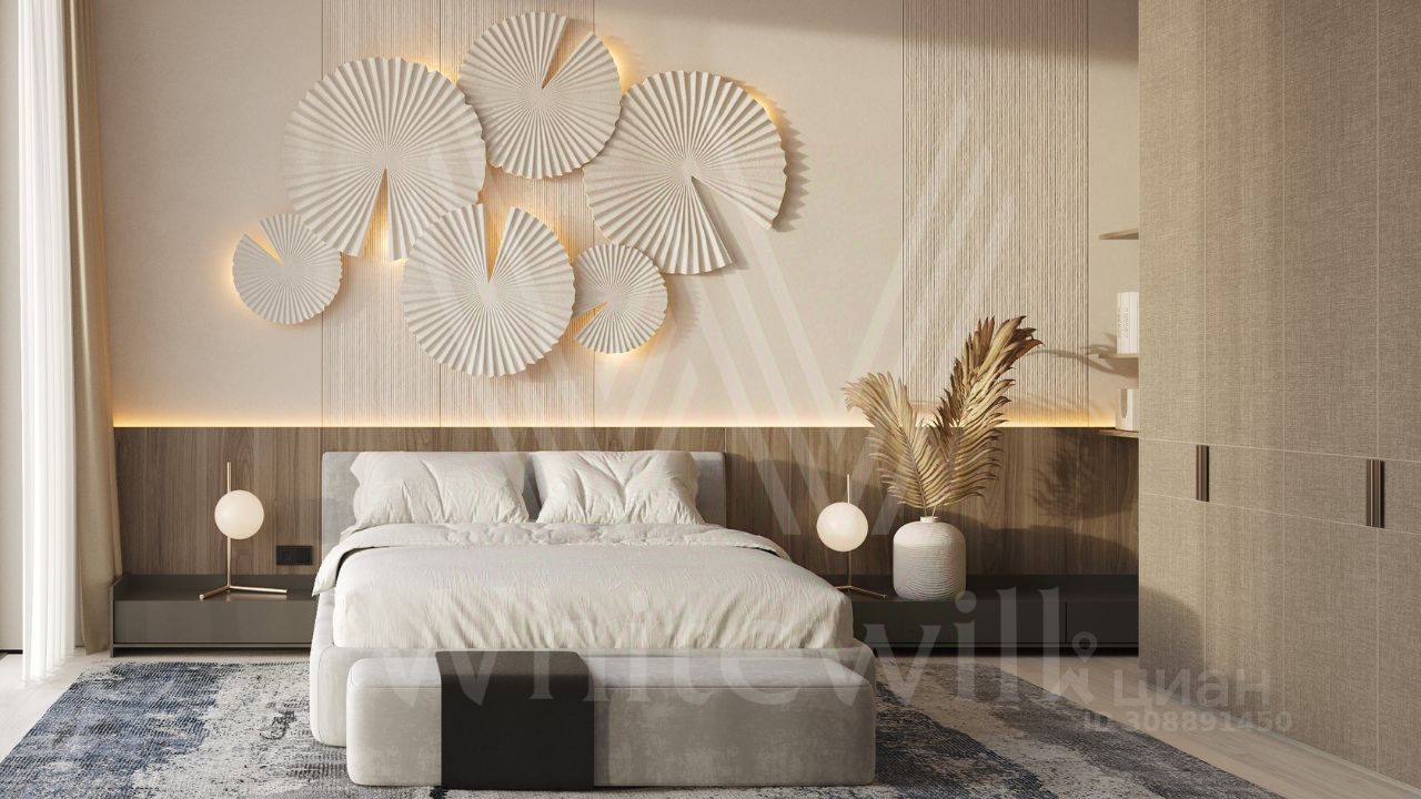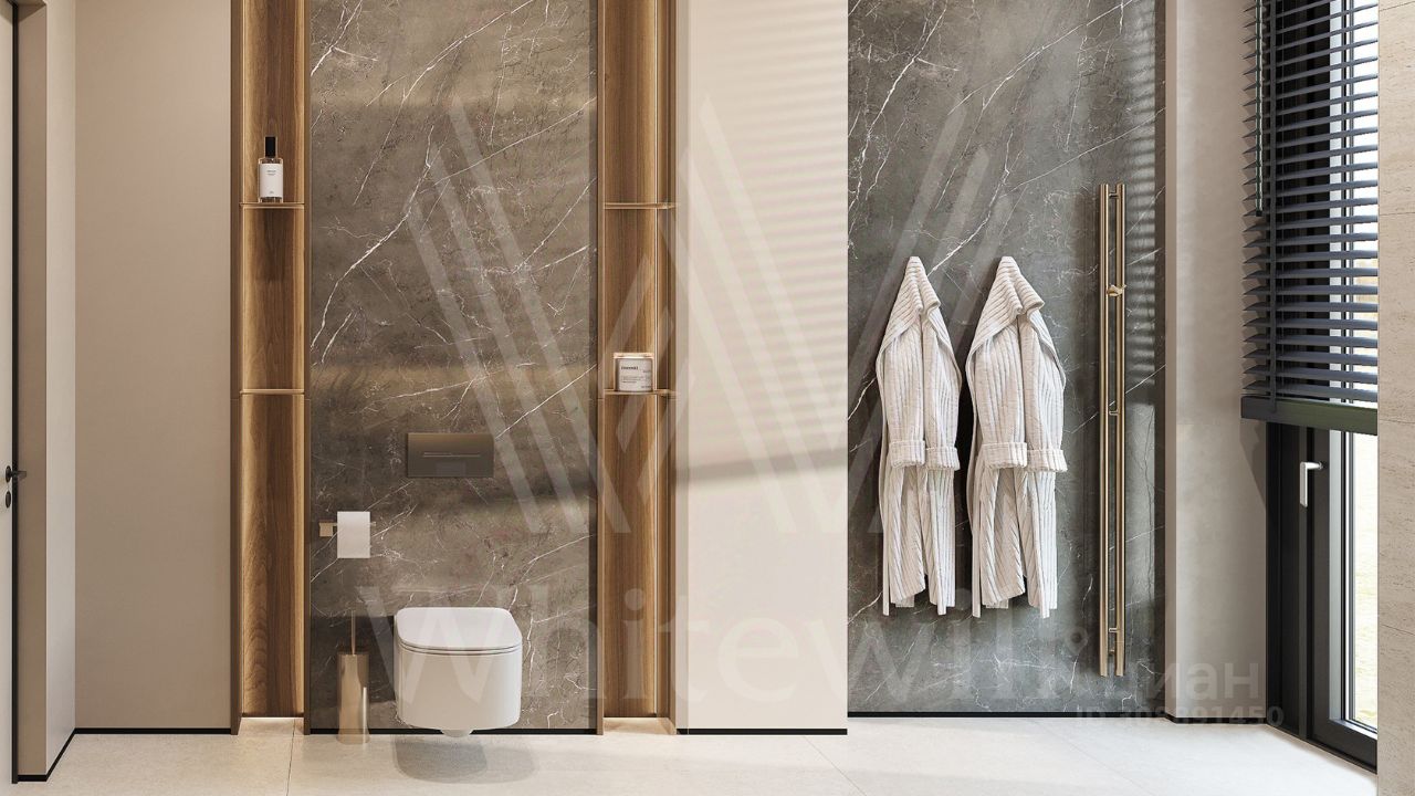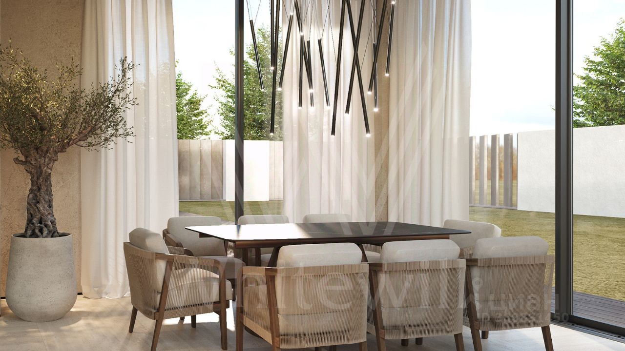 ID 12 904. Райт Хиллс. Новый загородный дом площадью 550 м², расположен на ровном участке 21,6 соток. Расположение в поселке- самая высокая точка. Фасад с панорамными окнами выполнен в современном стиле и облицован итальянским керамогранитом Laminam, немецкой декоративной штукатуркой StoMarlit и декорирован рейками из мореного дуба. Коттедж предлагается без отделки.