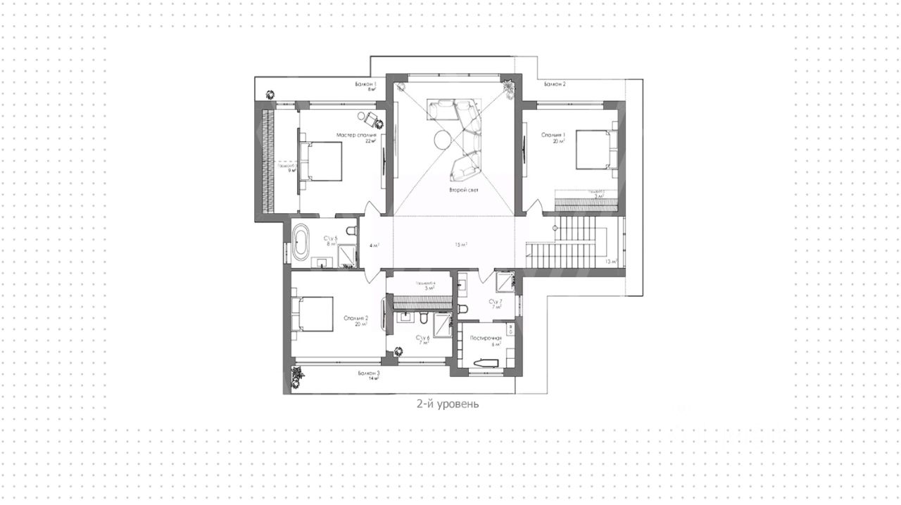 В доме спланировали просторную гостиную со вторым светом в 7 метров, гостиную-столовую, всего 4 спальни со своими санузлами, кабинет, SPA-зону с парной и комнатой отдыха, комнату для персонала с отдельным входом. Высота потолков на 1-м этаже 3,3м, на втором- 3,2м Из-за большой площади остекления в доме установлены усиленные профили Шуко. Все окна с проветриванием без горизонтальных перемычек. Также в контуре дома предусмотрен гараж на 2 машины с остеклением, монолитный навес на 2 машиноместа, шириной 8 метров. На заднем дворе может расположиться открытый бассейн. На участке будут выполнены ландшафтные работы: газон, 6-метровые деревья -туи и ели, автополив. Продумано все по инсоляции и правильной посадки дома на участке. Покупателю в подарок все проекты: дизайн, по коммуникациям.