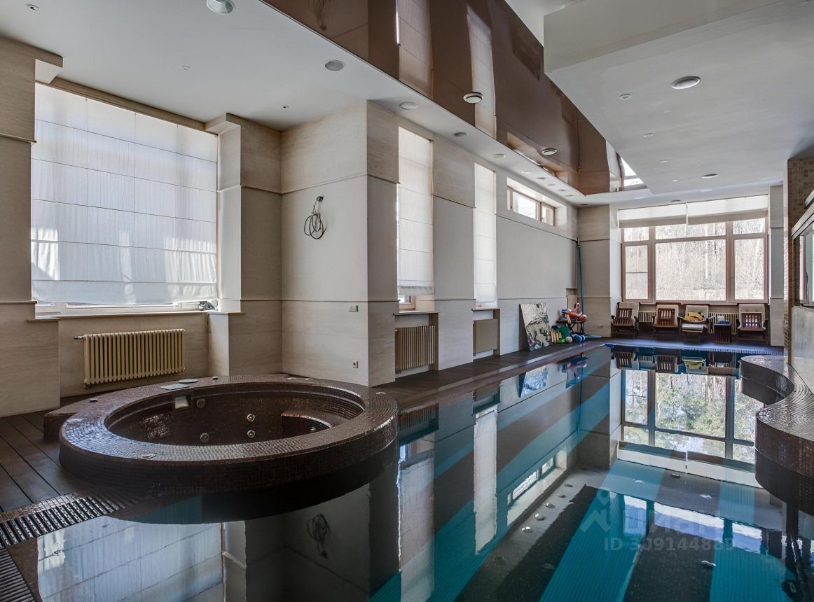1 этаж: прихожая, гардеробная, гостевой су, холл, рабочая кухня, мастер-кухня, столовая с выходом на террасу, винный погреб, каминный зал, гостиная - зимний сад с выходом на террасу, СПА-зона: бассейн 13*4м, джакузи, выход на террасу, хамам, душевая, спортзал. 2 этаж: мастер-спальня с 2 гардеробными, балконом, кабинетом и су, кабинет с су и балконом, детский блок: холл с гардеробом, игровая, 2 спальни с су, спальня с санузлом и гардеробной. Мансарда: гостиная/игровая, спальня с су, кладовая.