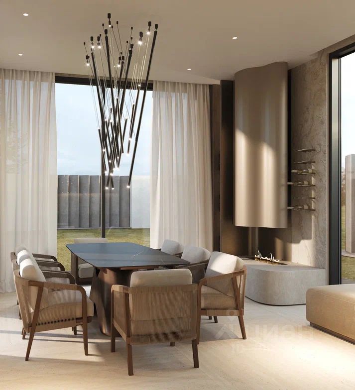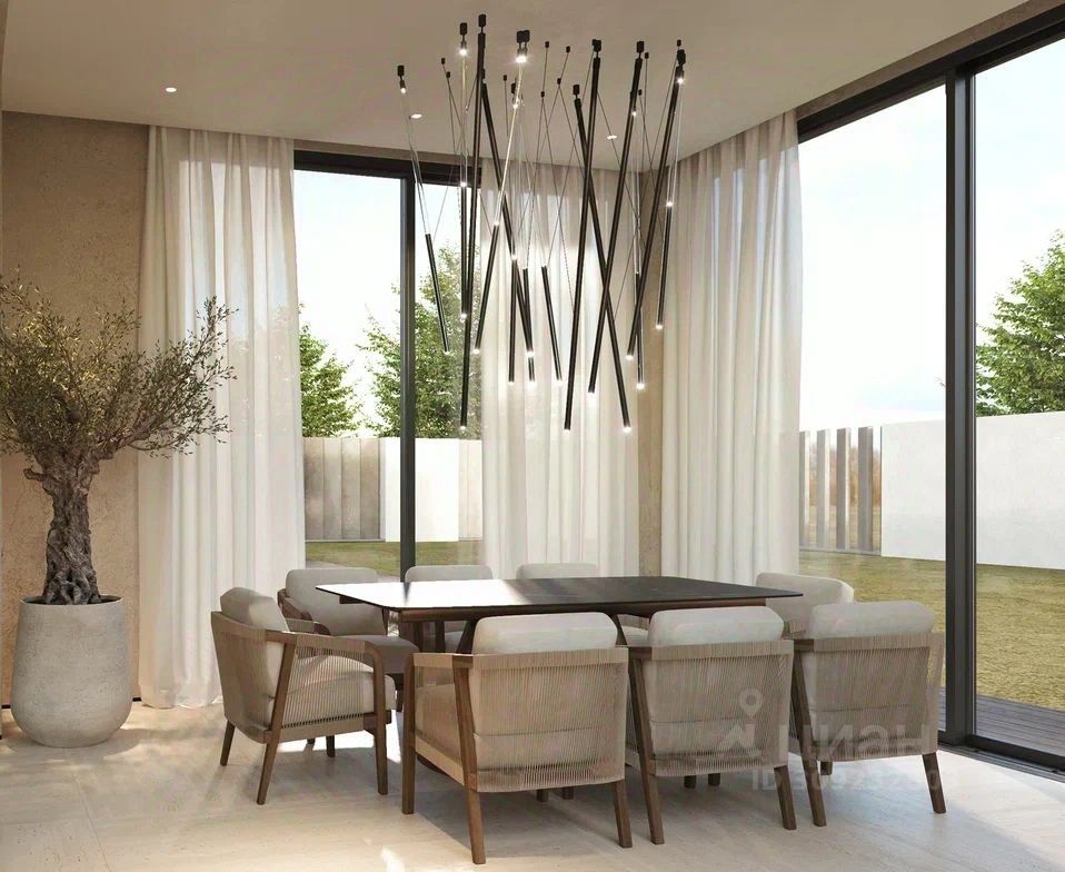 Этаж 1: Входная группа, гардеробная, гостевой санузел, кухня-столовая, гостиная со вторым светом и с выходом на террасу, зимний сад, мастер спальня с гардеробной и санузлом, постирочная, котельная, гараж на два машиноместа, навес на два машиноместа.