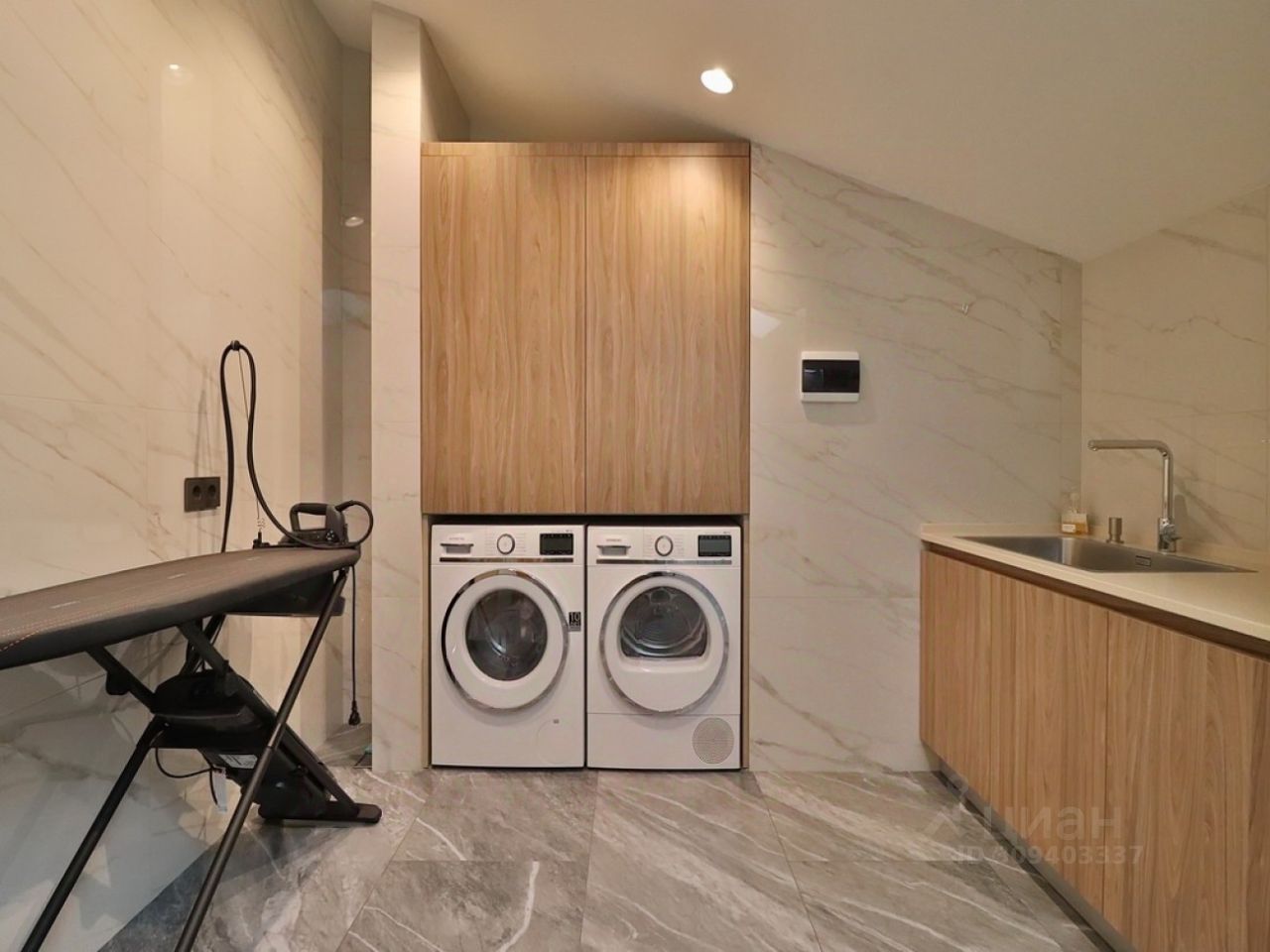 Лот 42547. Таунхаус под ключ 298 кв.м. на участке 4.00 соток. Количество спален: 4. Коттеджный посёлок ''Прозорово'', Новорижское шоссе, 15 км от МКАД. Участок, придомовая территория, газон, туи по периметру, отапливаемая беседка барбекю. Коттеджный поселок ''Прозорово''. Таунхаус полностью под ключ, меблирован, свежий ремонт. Дизайнерская отделка и освещение, со вкусом подобранная удобная мебель. Использовались только современные дорогостоящие материалы. Сделана шумоизоляция стен, общие стены с соседями. Комфортная планировка с четырьмя спальнями. Центральные коммуникации. В доме установлены приточно-вытяжная вентиляция, кондиционирование, системы видеонаблюдения и пожарной безопасности, премиальная очистка воды, бензогенератор как альтернативный источник электричества. На участке расположена отапливаемая беседка-барбекю. Поселок строго охраняемый, детские и спортивные площадки. Богатая инфраструктура района. Отличная транспортная доступность. 1 этаж: прихожая, гардеробная, гостиная-кухня-столовая, кладовая, с/у, кабинет, бойлерная. 2 этаж: мастер спальня с с/у и гардеробной, две спальни, два с/у, балконы. Мансарда: зонирование на гостевую спальню, и зону отдыха/игровую, постирочная, с/у.