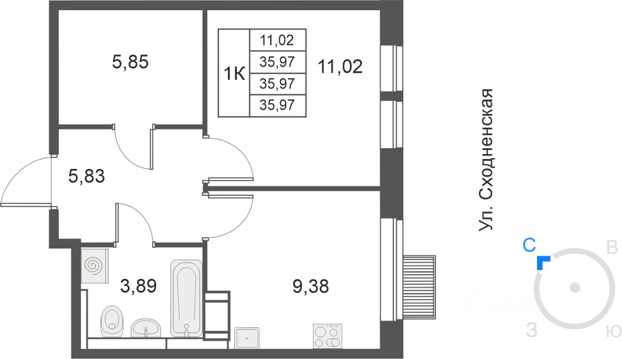 Общая площадь35,97 м2