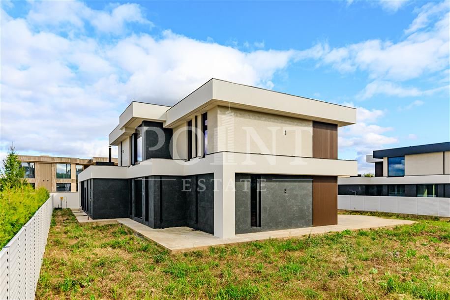 Лот: 111102. Современный двухэтажный загородный дом площадью 505 кв.м под отделку (Shell&Core) построен на участке 16,09 сотки в премиальном коттеджном поселке ''Райт Хиллс''. Планировкой предусмотрено размещение на первом этаже двусветной гостиной, кухни, совмещенной с обеденной зоной, спальни с гардеробной и санузлом, кабинета, гостевого санузла, гардеробной, котельной, постирочной, террасы. Второй этаж займет спальня с гардеробной и санузлом, еще несколько спальнен, одна из которых со своей гардеробной, санузел, холл, постирочная. Имеется встроенный гараж для двух автомобилей, кроме того есть парковка на два машино-места. На участке высажены ели и туи. В непосредственной близости от поселка расположены: большой густой лес с оборудованной зоной для прогулок, супермаркеты, фитнес-центры, кафе, рестораны, банный комплекс, горнолыжный спуск, 5 престижных школьных учреждений, 2 детских сада, и медицинские центры.
