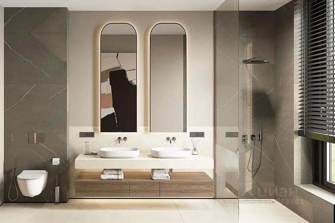 Дизайнерский ремонт и функциональная планировка: на первом этаже располагается большая кухня гостиная со вторым светом, мастер спальня с гардеробной и своим санузлом, большой гараж на два машиноместа и большой навес на две машины. На втором этаже мастер спальня с гардеробной и ванной комнатой, две спальни со своими гардеробными и большой ванной комнатой.