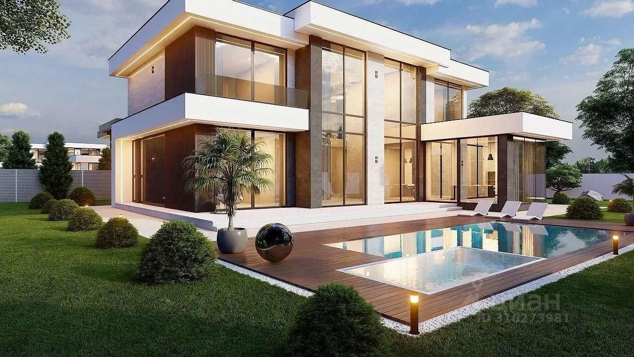 Продаётся роскошный дом с панорамным остеклением в коттеджном посёлке Райт Хиллс (Sky Hills), в 18 км от МКАД (Новорижское шоссе).