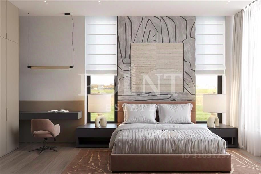 Лот: 111099. Современный двухэтажный загородный дом площадью 505 кв.м со стильным интерьером построен на участке 16,22 сотки с открытым бассейном в престижном коттеджном поселке ''Райт Хиллс''. На первом этаже находится двусветная гостиная, кухня, совмещенная с обеденной зоной, спальня с гардеробной и санузлом, кабинет, гостевой санузел, холл, гардеробная, котельная, постирочная, террасы, гараж на два машино-места. Второй этаж занимает спальня с гардеробной и санузлом, еще 2 спальни, одна из которых со своей гардеробной, холл, санузел. На придомовой территории предусмотрена парковка для двух автомобилей. Внутри поселка жители могут наслаждаться приятными вечерами в уютном кафе, пользоваться услугами фитнес-центра, прогуливаться по лесопарковой территории. В пешей доступности находится обустроенная набережная Истры, горнолыжный спуск, а также ресторан.