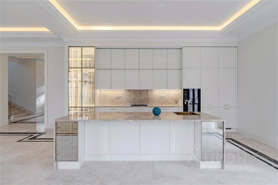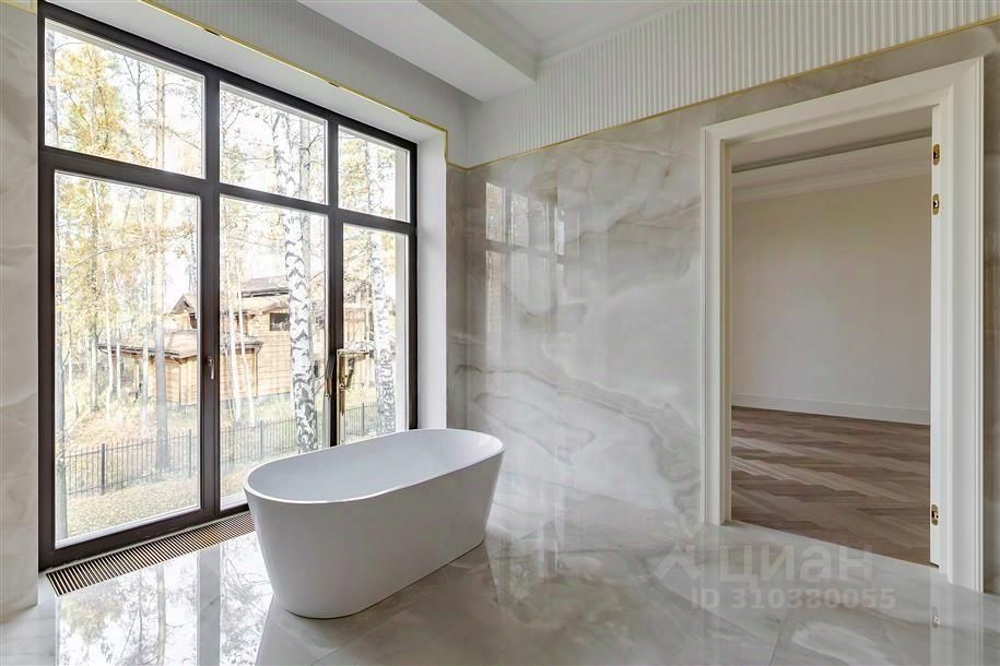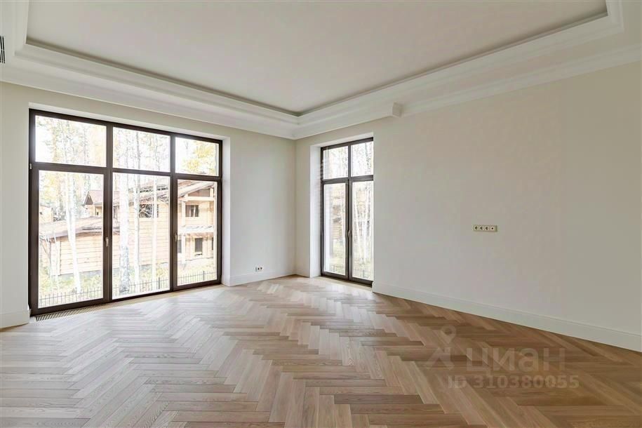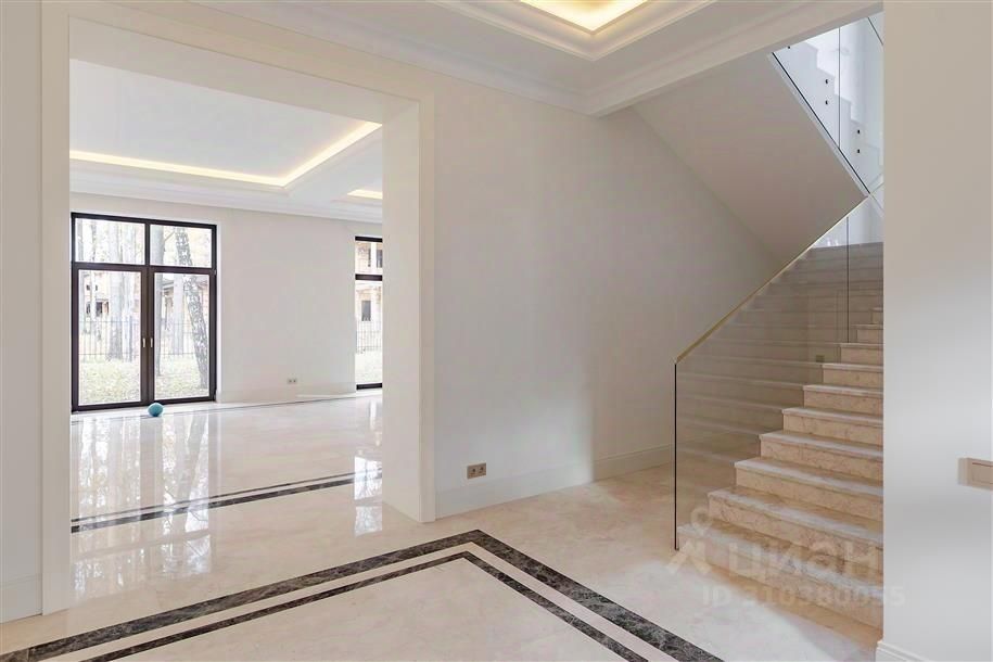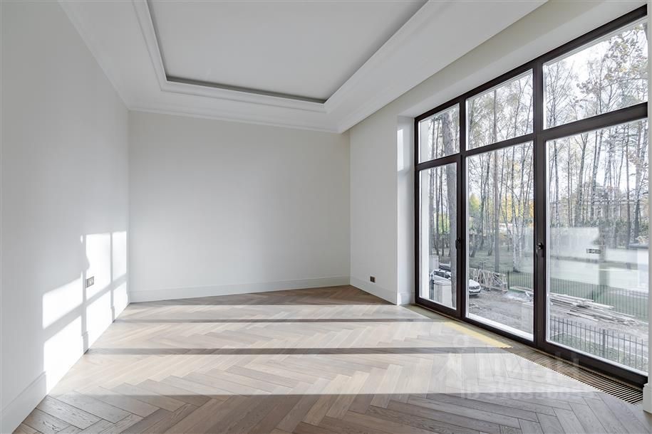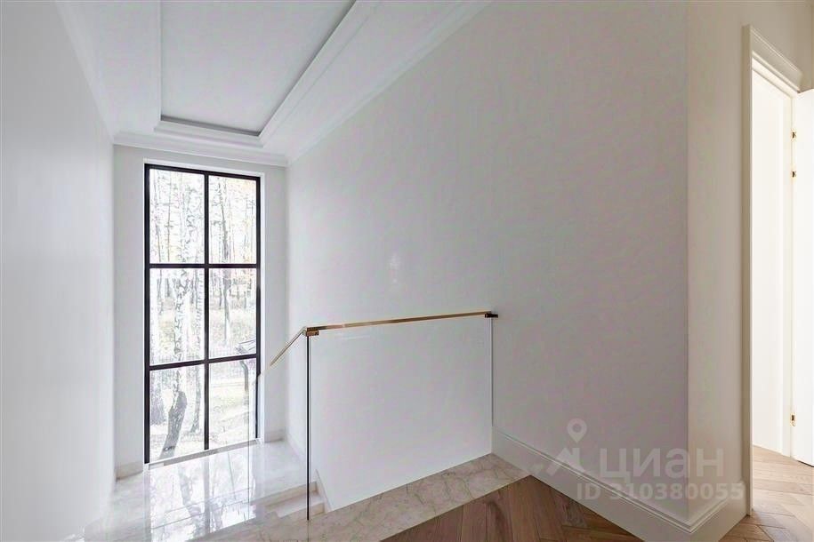На первом этаже находится гостиная с камином, объединенная с кухней и с обеденной зоной, спальня с гардеробной и санузлом, холл, гостевой санузел, гардеробная, постирочная. Второй этаж занимают три спальни с санузлами, две из которых с индивидуальными гардеробными. Уютная и тихая огороженная территория.