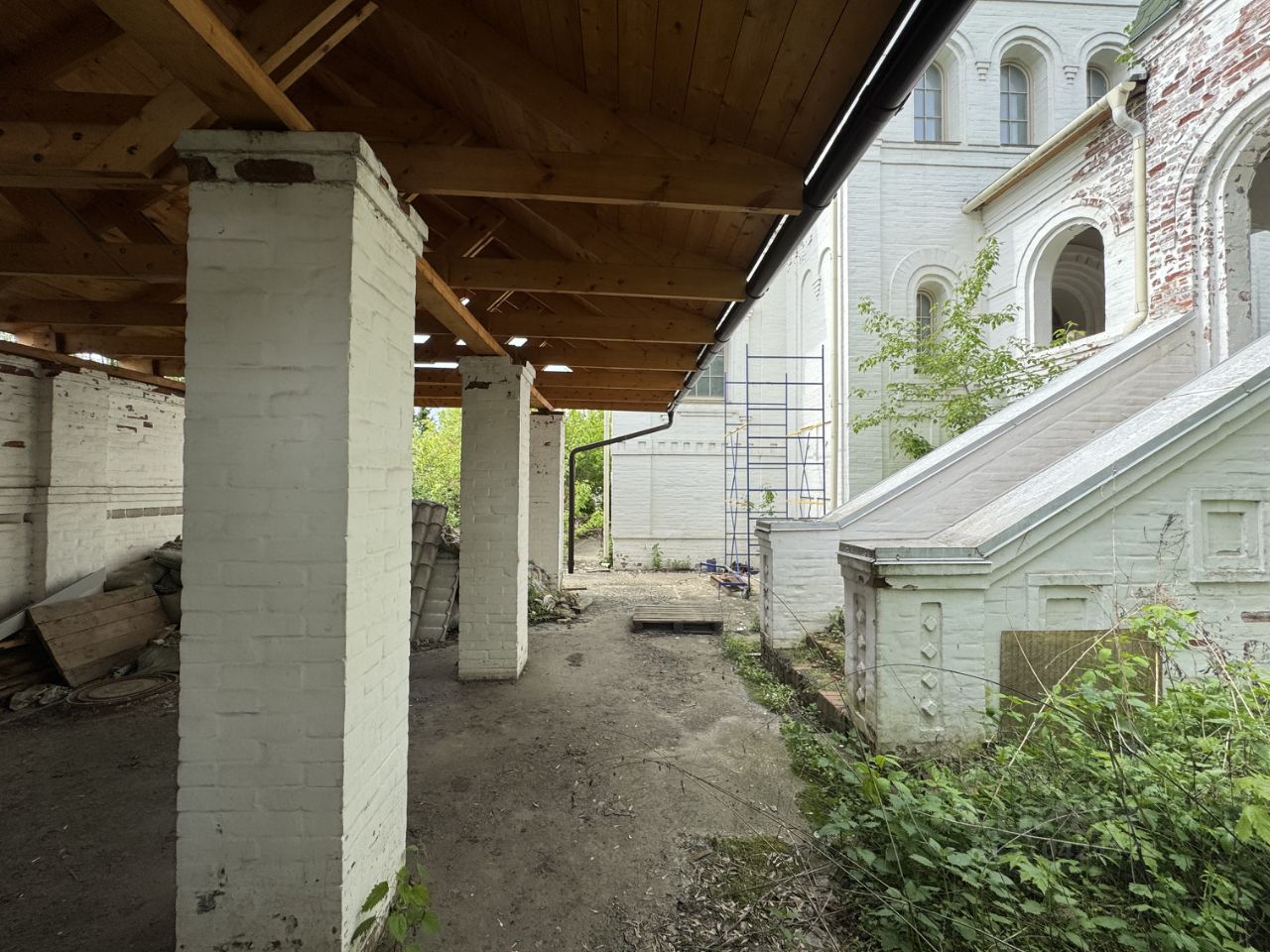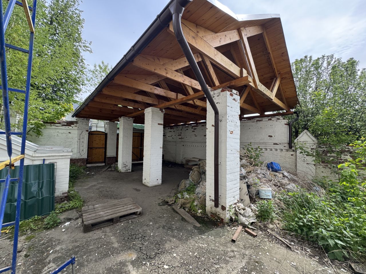 Кирпичный дом-коттедж в старорусском стиле (строительством занимался служитель церкви) на участке 12 соток. Участок ровный, правильной формы. Коммуникации центральные. Вода - скважина.