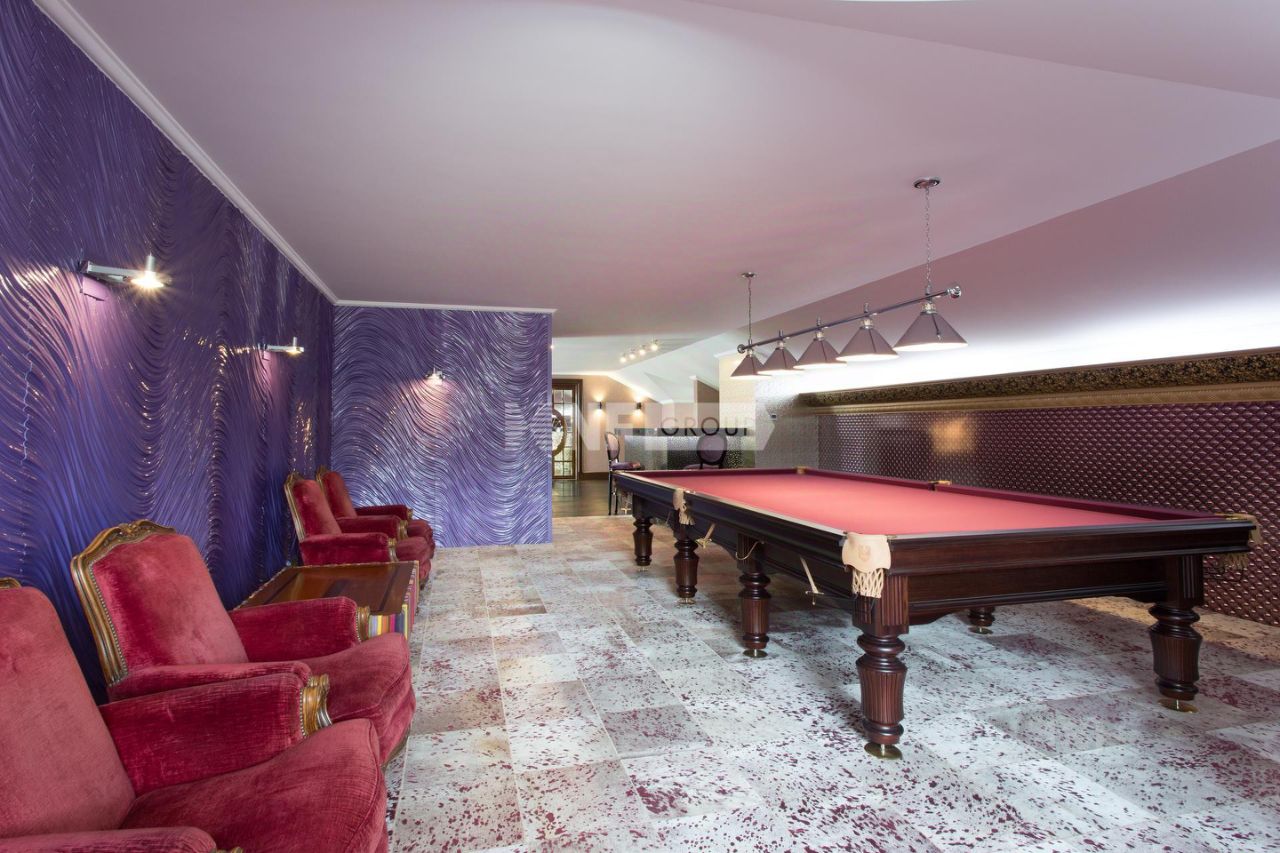 Цоколь: котельная, постирочная, винная, техническая зона бассейна 1 этаж: холл, гардеробная, су, лифт, каминный зал, кухня-столовая с выходом во двор,зона spa: бассейн 9м. С выходом во двор, хамам,гардеробная, душевая, су, лифт 2 этаж: холл, хозяйская спальня с 2-мя гардеробными и ванной комнатой, кабинет, лифт, спальня с су, спальня с су и гардеробной, спальня Мансарда: бильярдная, барная, лифт, спальня с су, су, кинотеатр