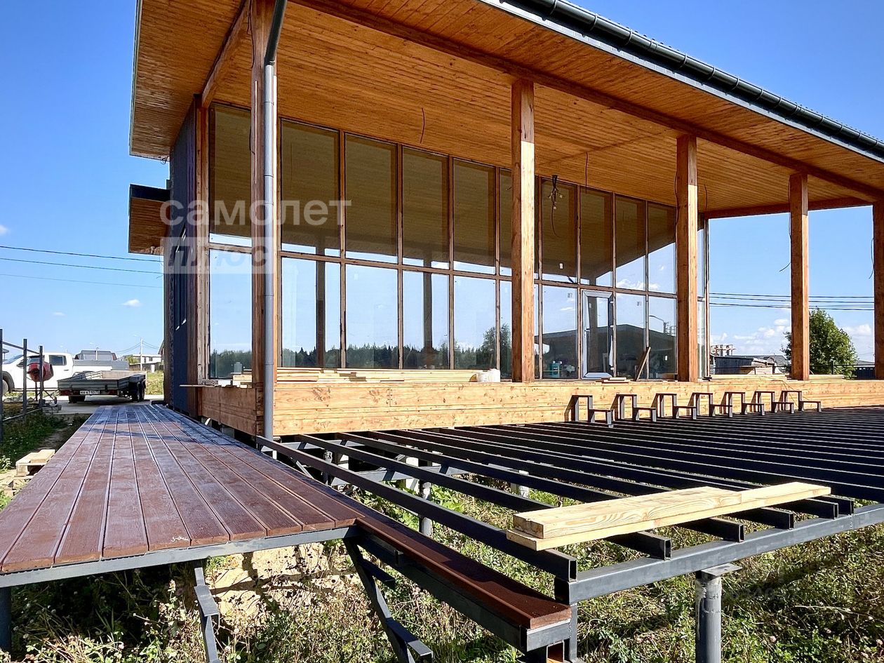 Продается дом в современном коттеджном поселке ''Артек 2'', на берегу озера, в окружении леса. Поселок расположен в 17 км. от МКАД по Волоколамскому шоссе, в Красногорском районе, Московской области. Поселок современный, активно развивающийся, территория огорожена, на въезде имеется пропускной пункт. Качественные асфальтированные дороги, уличное освещение, проведен ГАЗ. В границах поселка прогулочная зона, озеро, пляж. Внешняя инфраструктура: - в пешей доступности магазины, супермаркеты, аптека, кафе, автомойка, шиномонтаж. - пешей доступности находятся 2 детских сада, государственный и частный. Школьный автобус развозит детей по расписанию в школы пгт. Нахабино. - в радиусе 10 км. находятся торговые центры, гипермаркеты Ригамолл, Карусель, Глобус, Hoff, OBI, ТвойДом, MajorAuto. Транспортная доступность: - 25 минут на автомобиле до МКАД по Волоколамскому или по Новорижскому шоссе. - 20 минут на общественном транспорте от въезда в поселок до станции МЦД-2 ''Нахабино'', автобусы и маршрутки отправляются каждые 15 минут. Дом расположен на берегу озера, на участке с выходом к воде. Изначально, планировалось построить под сдачу в аренду, для круглогодичного отдыха. Дом каркасный 185 метров, по теплому контуру 135 метров, построен на железобетонных сваях, имеет 3 спальных комнаты, в каждой из которых есть свой выход на улицу, большую кухню-гостиную с панорамными окнами и выходом на просторную террасу, 2 санузла, прихожую. В доме сделана разводка теплых полов по всему контуру, установлена хорошая входная дверь со стеклом, все коммуникации заведены и сантехника подключена. Участок ровный, правильной формы 15 соток, категория - земли населенных пунктов, ИЖС. Участок выровнен, верхний слой отсыпан плодородной землей, вокруг дома сделана дренажная система и выведена в боковую ливневую систему. С боковой стороны участка, от дороги начато строительство забора. С главного входа забетонирован хороший заезд к дому на 2 машины. Котельная на участке построена отдельно, все коммуникации проложены в дом и подведены к бане. Под баню заложен свайный фундамент. В доме имеется три вида отопления газовое, электрическое и дизельное - 2 бака по 800 литров каждый. ГАЗ - котел мощностью 60 кВт. Канализация большой септик, рассчитанный на 15 человек. Вода скважина с артезианской водой. Электричество 15 кВт. Один собственник, свободная продажа. Пожалуйста звоните, оперативно организую показ данного участка с домом