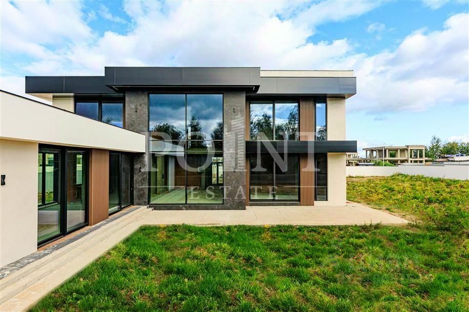 Лот: 111103. Современный двухэтажный загородный дом площадью 550 кв.м под отделку (Shell&Core) построен на участке 21,59 сотки в престижном коттеджном поселке ''Райт Хиллс''. Планировкой предусмотрено размещение на первом этаже гостиной, объединенной с кухней и обеденной зоной, спальни с санузлом, кабинета, полноценного и гостевого санузлов, холла, сауны, комнаты отдыха, гардеробной, котельной, постирочной, террасы. Второй этаж займет спальня с гардеробной и санузлом, еще несколько спальнен, одна из которых со своей гардеробной, санузел, холл. Имеется встроенный гараж для двух автомобилей. На участке высажены ели и туи.
