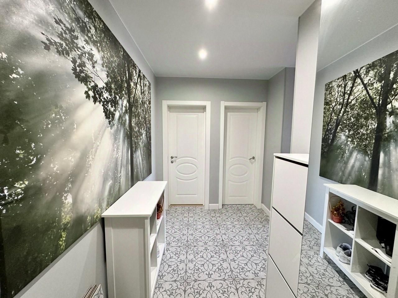 Квартира расположена на 16 этаже 25-этажного дома. Общая площадь составляет 70.8 кв.м, в которую входят: кухня, холл, две изолированные комнаты, каждая со своей лоджией), совмещенныц санузел и зимний сад.