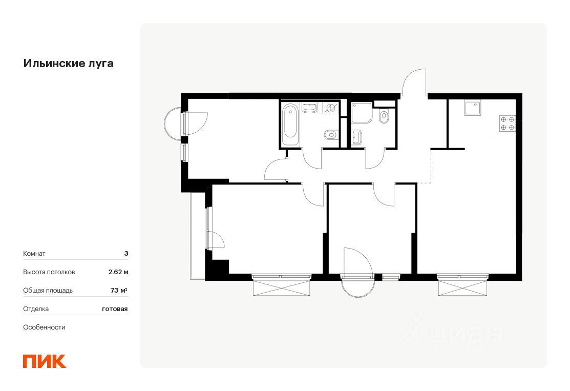Продаётся 3-комн. квартира площадью 73 кв.м на 6 этаже 9 этажного дома (Корпус 3.6, Секция 4) проекта ПИК Ильинские луга. Светлый просторный подъезд на уровне земли, функциональная планировка, большие окна, .