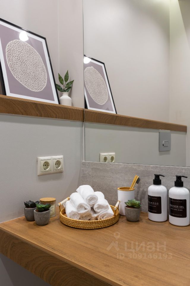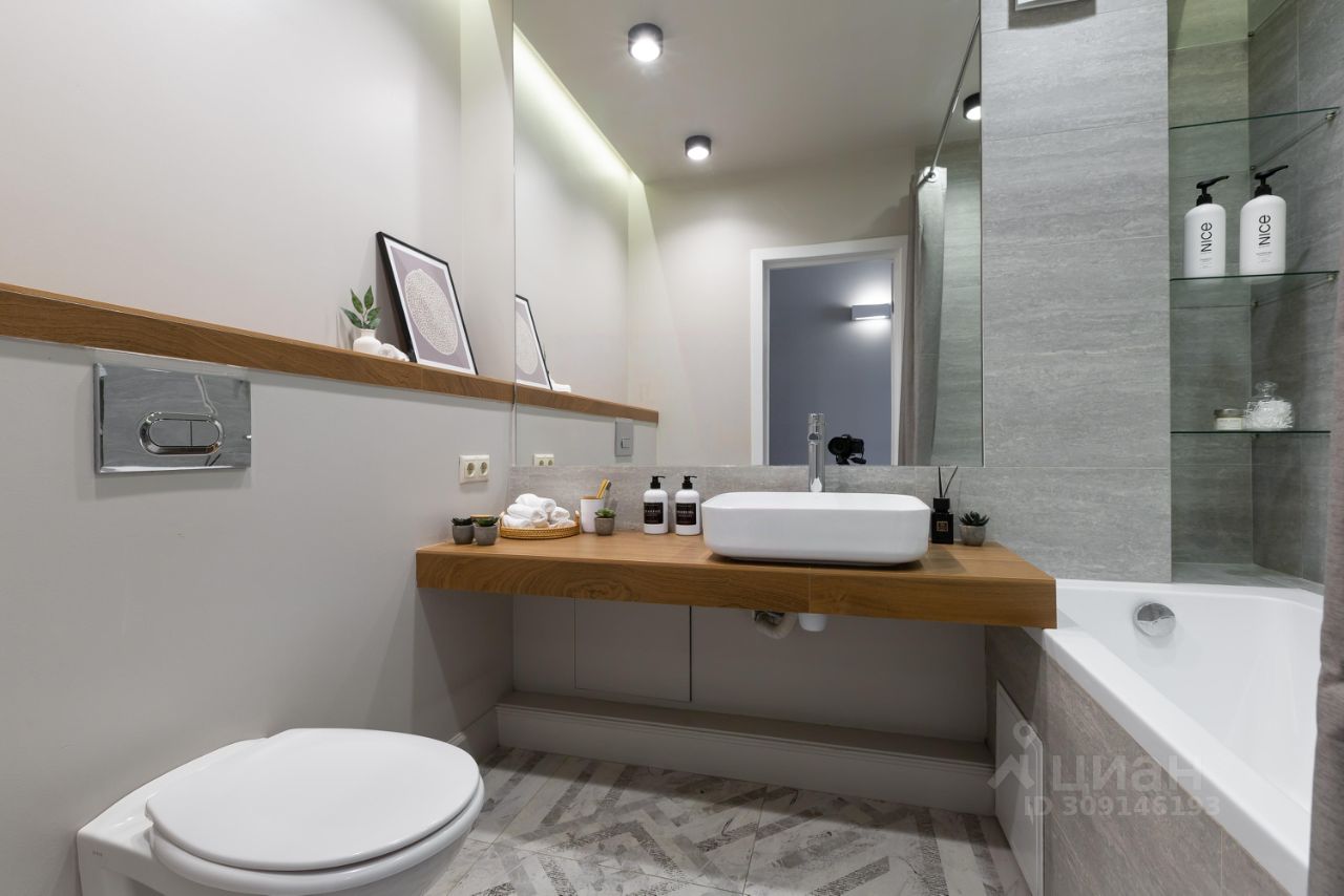 Ванная комната: - ванна, стиральная машина, фен, - стиральный порошок, средства для мытья посуды, - средства гигиены: шампунь, гель для душа, бальзам, жидкое мыло в дозаторах, - косметический набор, мицеллярная вода, ватные диски, ватные палочки, крем для рук, зубной набор. - одноразовые тапочки.