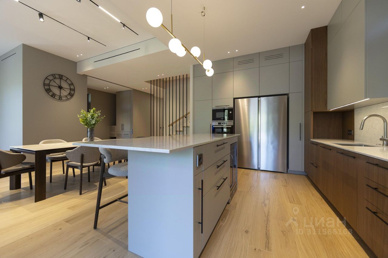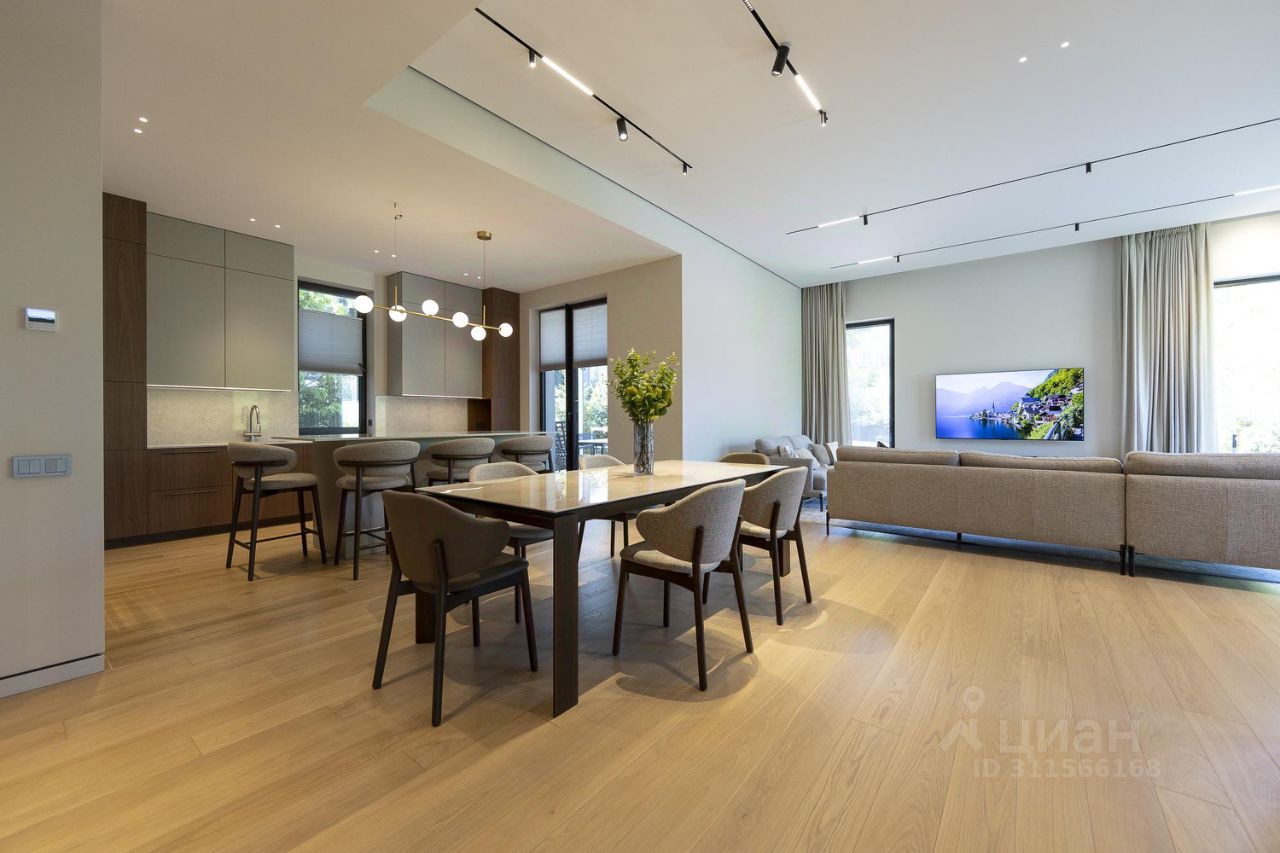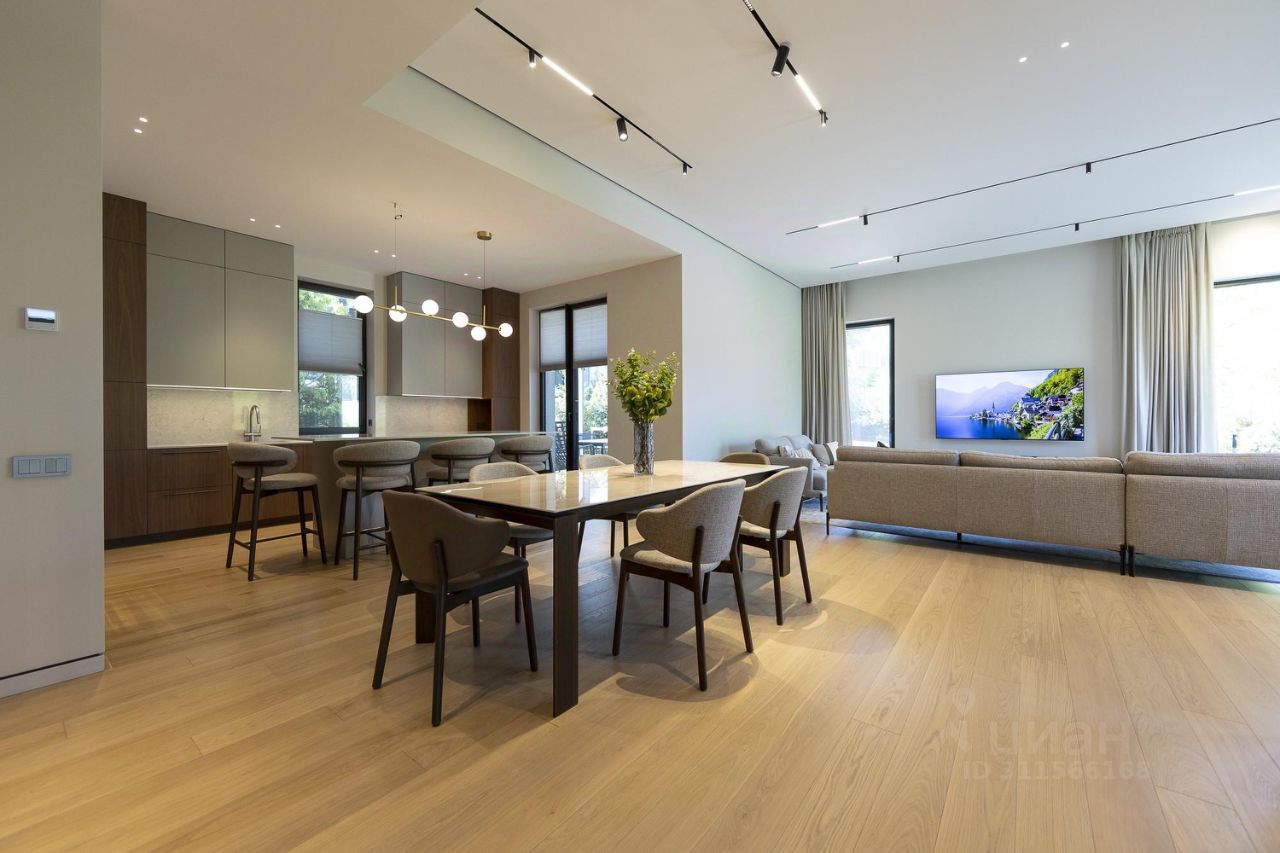 В доме: •2 гостиные, •6 спален, •7 санузлов, •гостиная с панорамными окнами в пол и потолками 3,4 м, •кухня-столовая с островом и выходом на летнее патио, •большой спортивный зал,