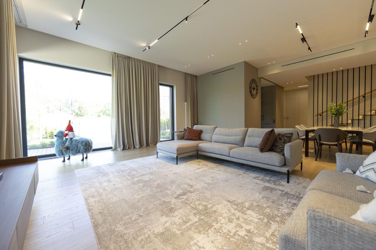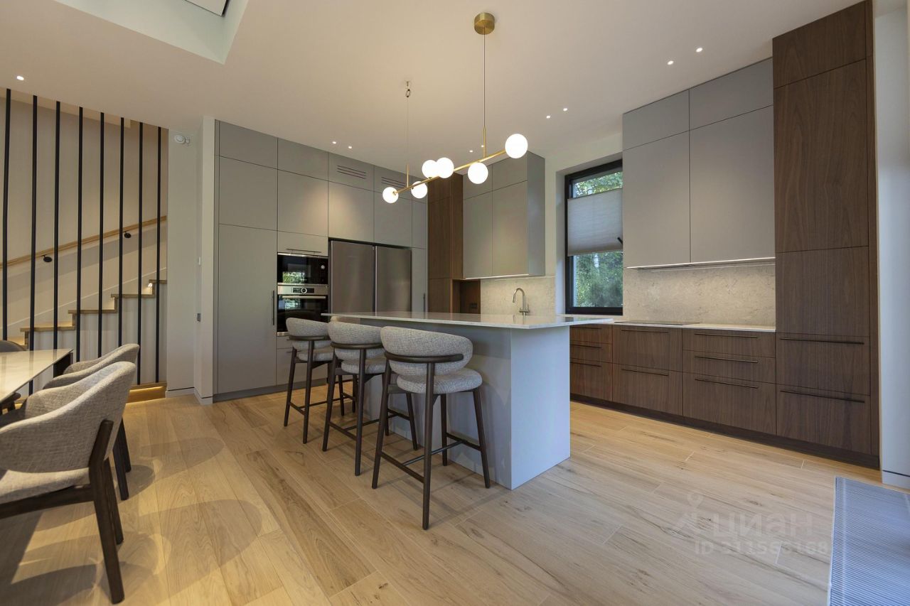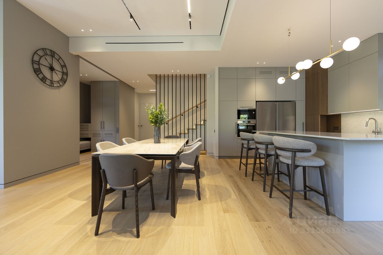 В доме: •2 гостиные, •6 спален, •7 санузлов, •гостиная с панорамными окнами в пол и потолками 3,4 м, •кухня-столовая с островом и выходом на летнее патио, •большой спортивный зал,