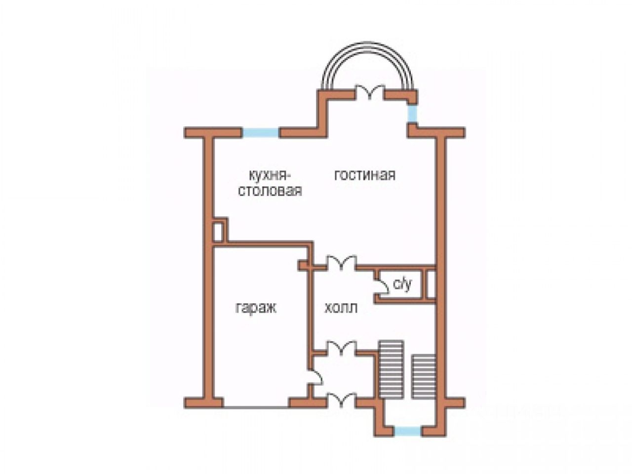 1 этаж: тамбур, холл, кухня-столовая, гостиная, с/узел, гараж на 1 автомашину.