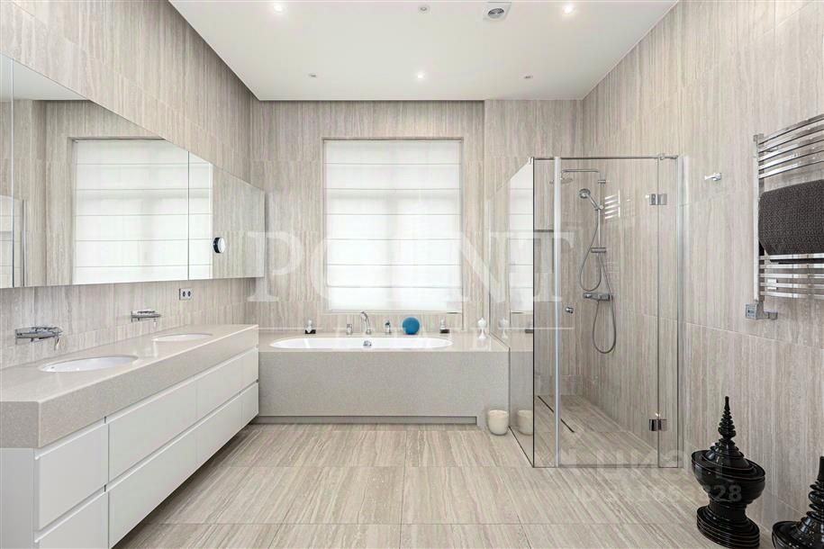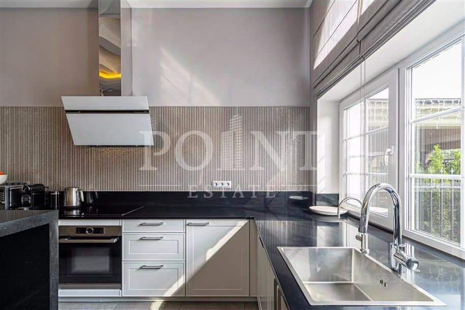 Лот: 108231. Светлый угловой таунхаус в четыре уровня площадью 420 кв.м построен на великолепном участке 5,7 сотки в охраняемом поселке ''Ильинка Лейнхаусов''. Таунхаус полностью меблирован и оборудован всей необходимой техникой от ведущих мировых производителей. Установлены системы видеонаблюдения и сигнализации. Грамотная планировка. На первом уровне (цоколь) находится постирочная, кладовая, санузел, котельная, бойлерная, гардеробная, блок для персонала. Второй уровень занимает гостиная с камином, кухня-столовая, санузел, гардеробная, прихожая. Третий уровень включает в себя две спальни, одна из которых со своей гардеробной и санузлом, холл, балкон. Четвертый уровень (мансарда) также отведен под три спальни, две из которых с гардеробными, санузел, холл. Предусмотрена парковка для двух автомобилей, есть беседка с зоной барбекю. Поселок обеспечен собственной инфраструктурой, к услугам жителей - отделение банка, ресторан, клуб для детей, минимаркет, химчистка, салон красоты. Кроме того, недалеко от ''Ильинки'' есть яхт-клуб, спортивный и развлекательный комплексы.