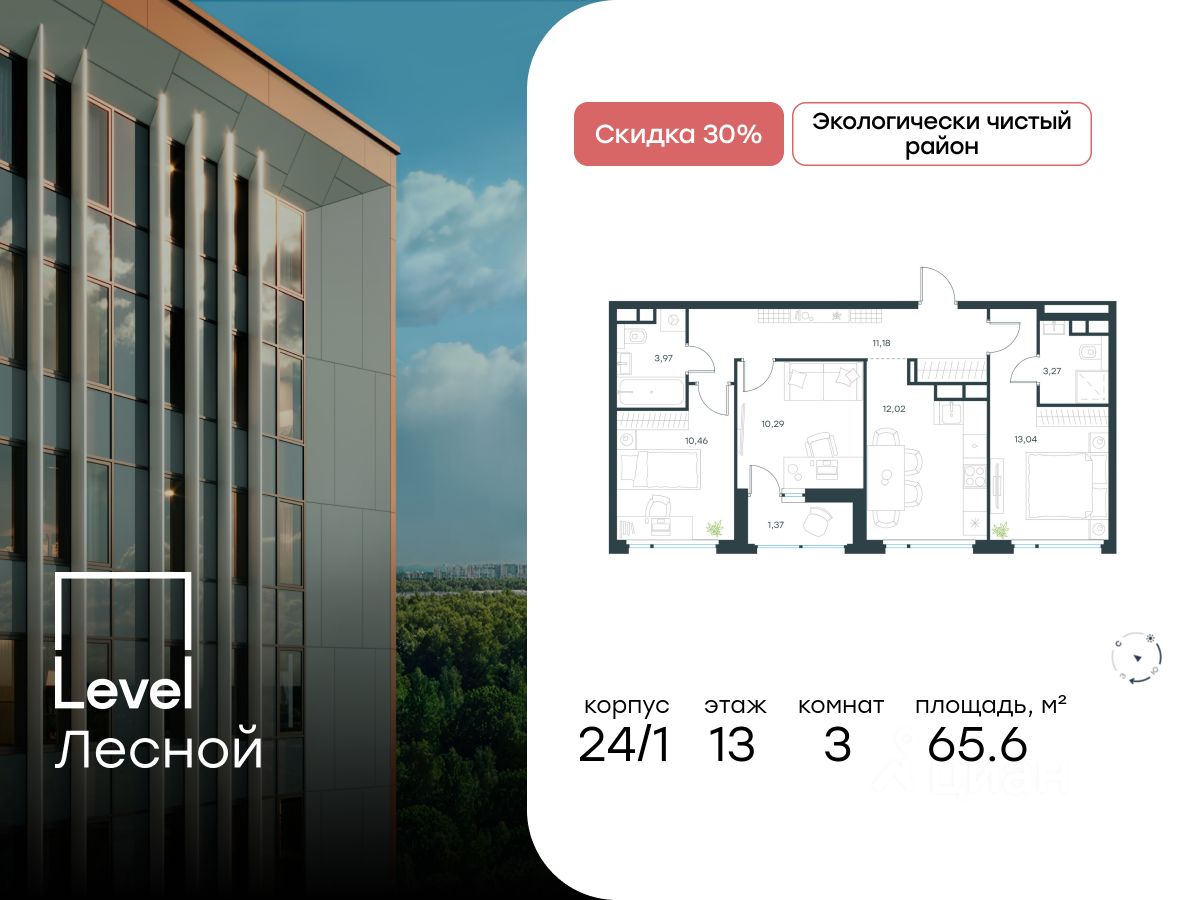 В районе, утопающем в густой зелени лесов, многочисленных парков и скверов, продаётся 3-комнатная квартира площадью 65.60 кв.м без отделки. Квартира расположена на 13 этаже в жилом комплексе комфорт-класса Level Лесной (компания Level Group/Левел групп).