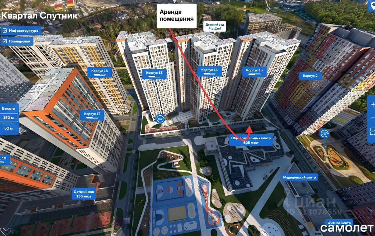 Аренда коммерческого помещения в ЖК ''Квартал Спутник'' от ГК Самолет.