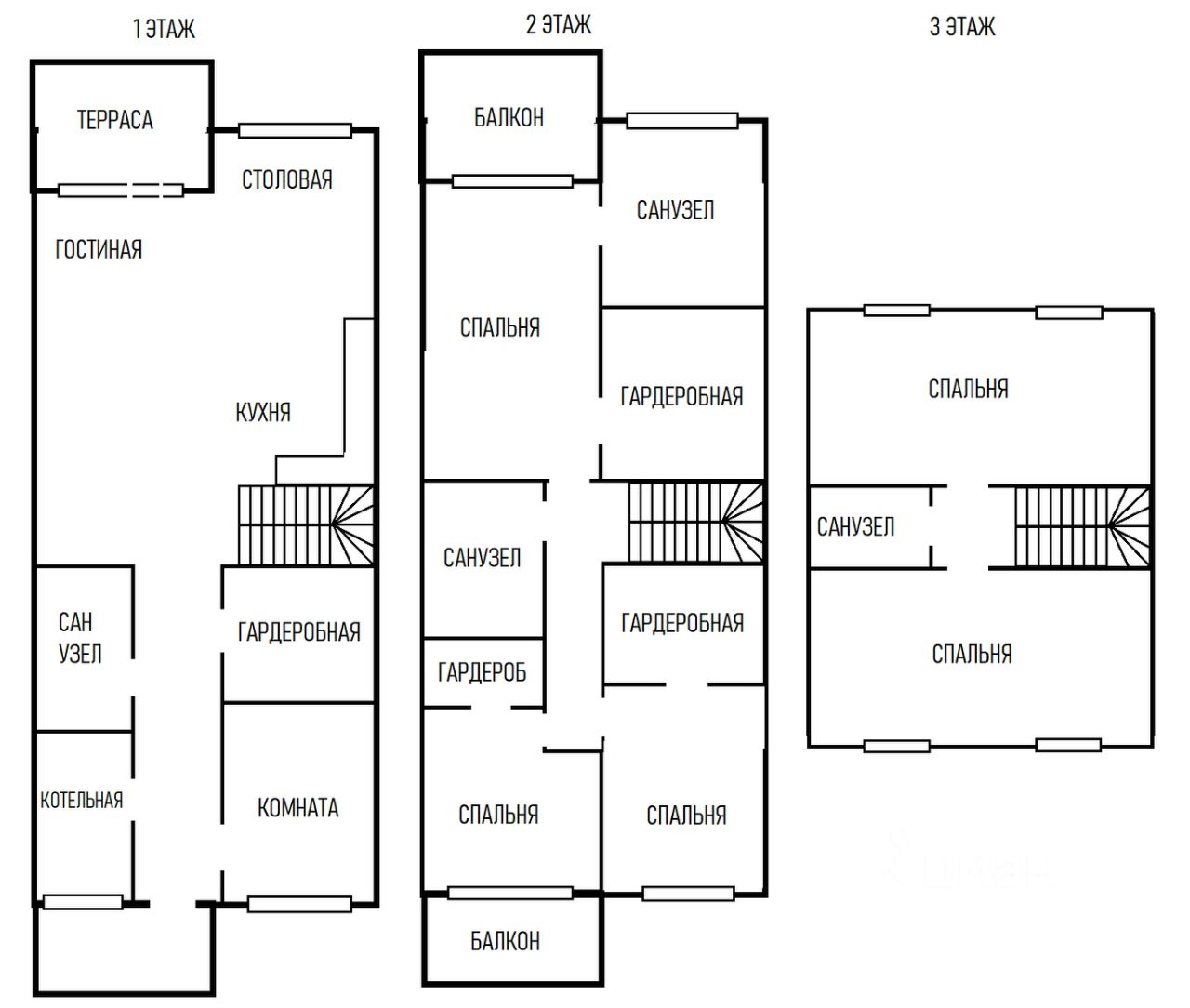 Планировка: 1 этаж: - Просторная входная группа - Кухня- гостиная со столовой зоной - Гостевая комната - Гостевой санузел - Котельная с постирочным блоком - Гардеробная 2 этаж: - Мастер спальня с просторным санузлом и гардеробной - Две спальни со своими гардеробными - Санузел на две спальни 3 этаж - Две спальни - Санузел на 2 спальни. Уличная терраса с барбекю зоной и ухоженным газоном. Перед таунхаусом площадка под 2 автомобиля.