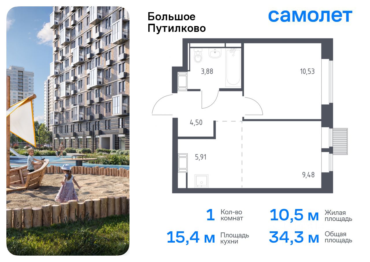 Предлагается 1-комнатная квартира комфорт-класса 34,3 кв.м в корпусе 28 на 15 этаже, в ЖК ''Большое Путилково'' Квартира без отделки. Доступность опции ''отделка'' и возможность комплектации мебелью и декором уточняйте на сайте застройщика.