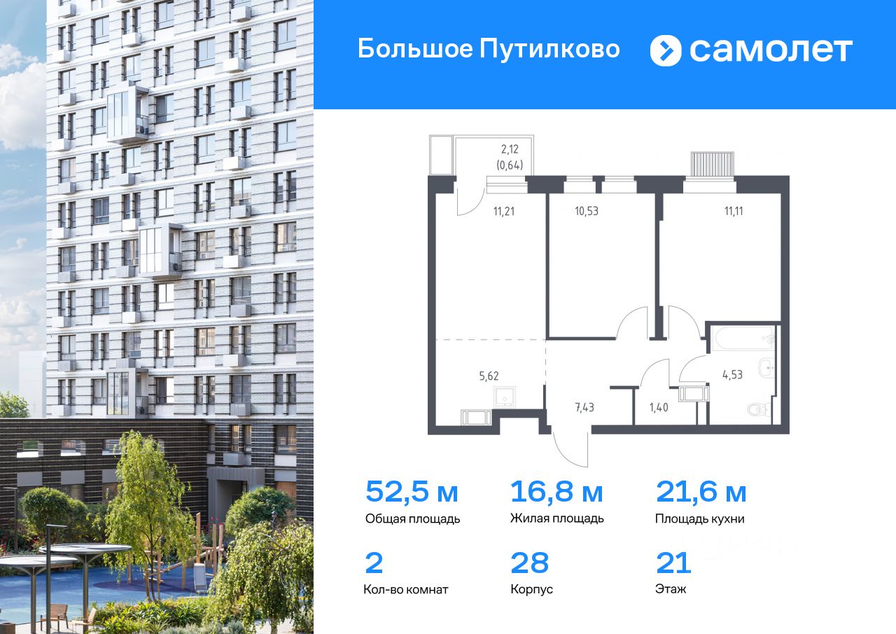 Предлагается 2-комнатная квартира комфорт-класса 52,47 кв.м в корпусе 28 на 21 этаже, в ЖК ''Большое Путилково'' Квартира без отделки. Доступность опции ''отделка'' и возможность комплектации мебелью и декором уточняйте у застройщика.